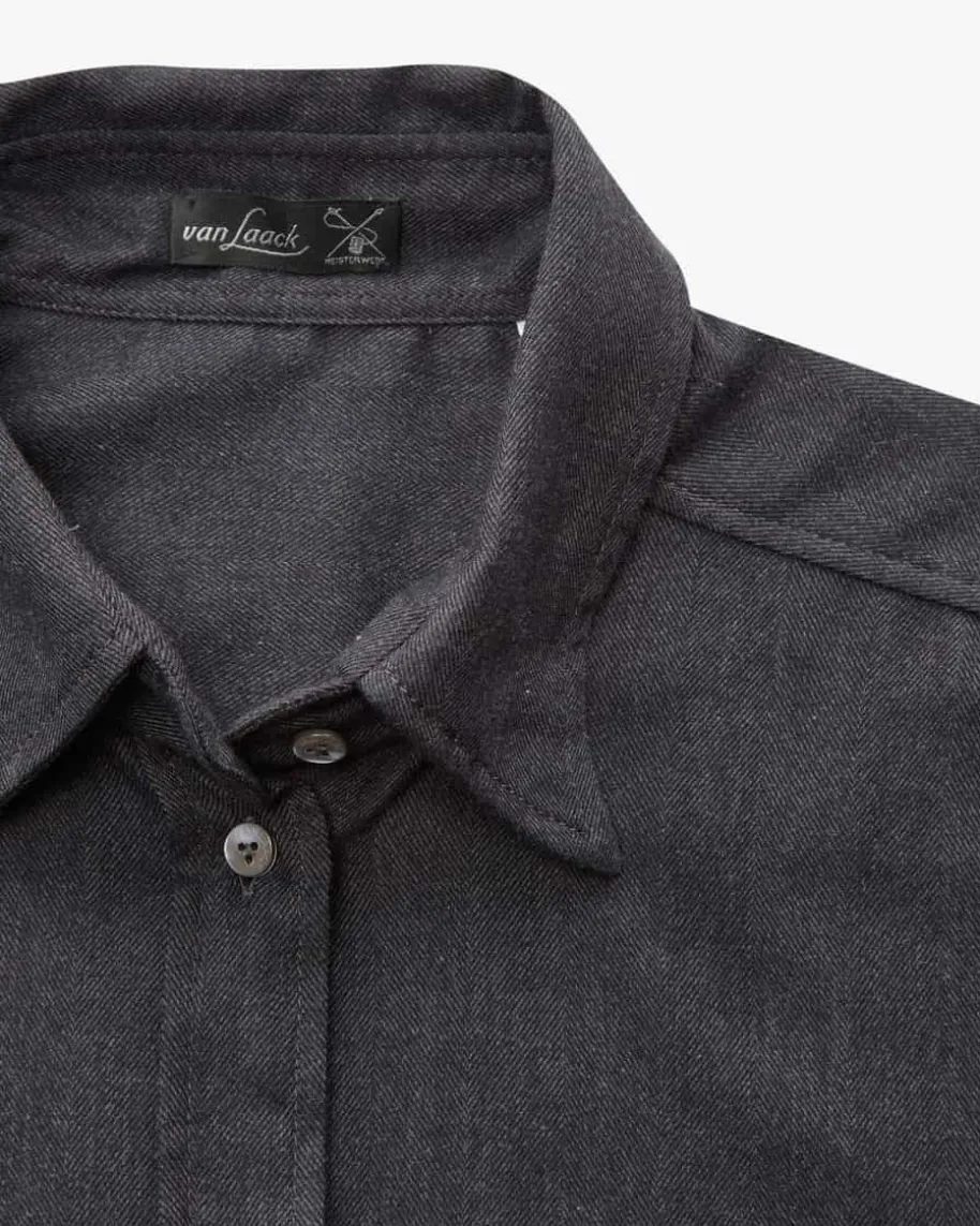 Effya Flanell-Hemdbluse für Damen von van Laack in Anthrazit. Das deutscheTraditionshaus steht seit 1881 für Maßhemden und hochwertige Blusen – elegantund detailverliebt. Auch dieses Modell mit feinem Fischgrät-Muster garantiertdank der hochwertigen Baumwoll-Flanell-Verarbeitung angenehmen Tragekomfort,während die dezent taillierte Passform Ihre Silhouette gekonnt umschmeichelt.