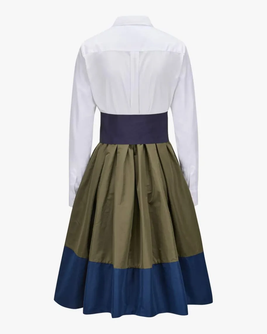 Elena Kleid für Damen von Sara Roka in Oliv, Weiß und Navy. Feminine Designs mitdem gewissen Etwas. Der Ursprung der Kollektionen findet sich im klassischenHerren-Hemd wieder, von dem die typischen Blusenkleider inspiriert sind. Auchdieses Modell präsentiert sich mit raffiniertem Material-Mix und klassischenHemd-Details. Das abnehmbare Taillenband zaubert eine feminine Silhouette undrundet den stilvollen Look gekonnt ab.
