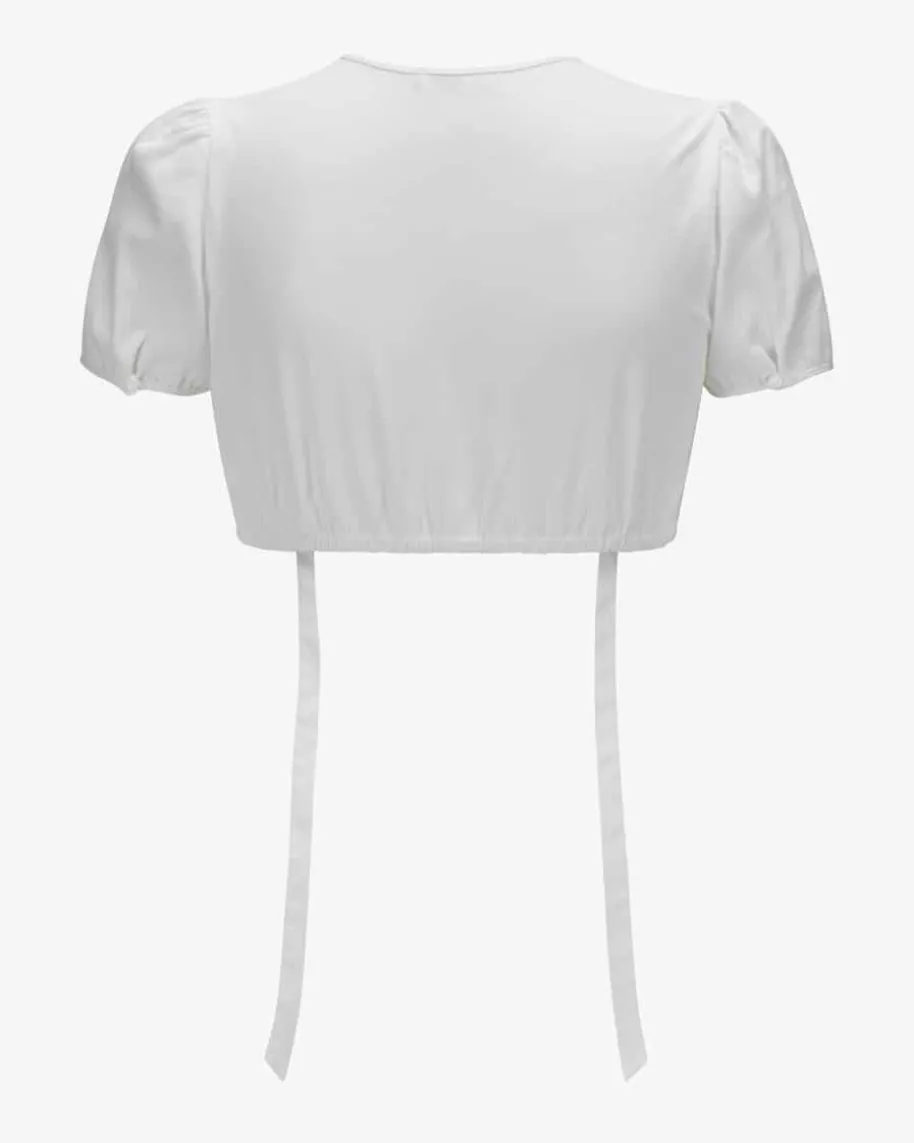 Ella Dirndlbluse für Damen von Gottseidank in Weiß. Das schlichte Modell mitklassischem Rundhals-Ausschnitt erweist sich als vielseitig kombinierbarerBegleiter für Ihren Trachten-Look. Edle Knöpfe in Perlmutt-Optik runden dasGesamtbild zugleich harmonisch ab.