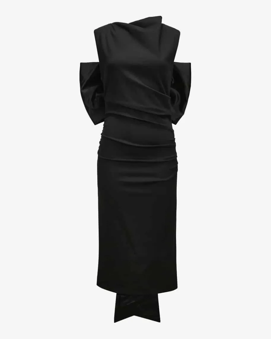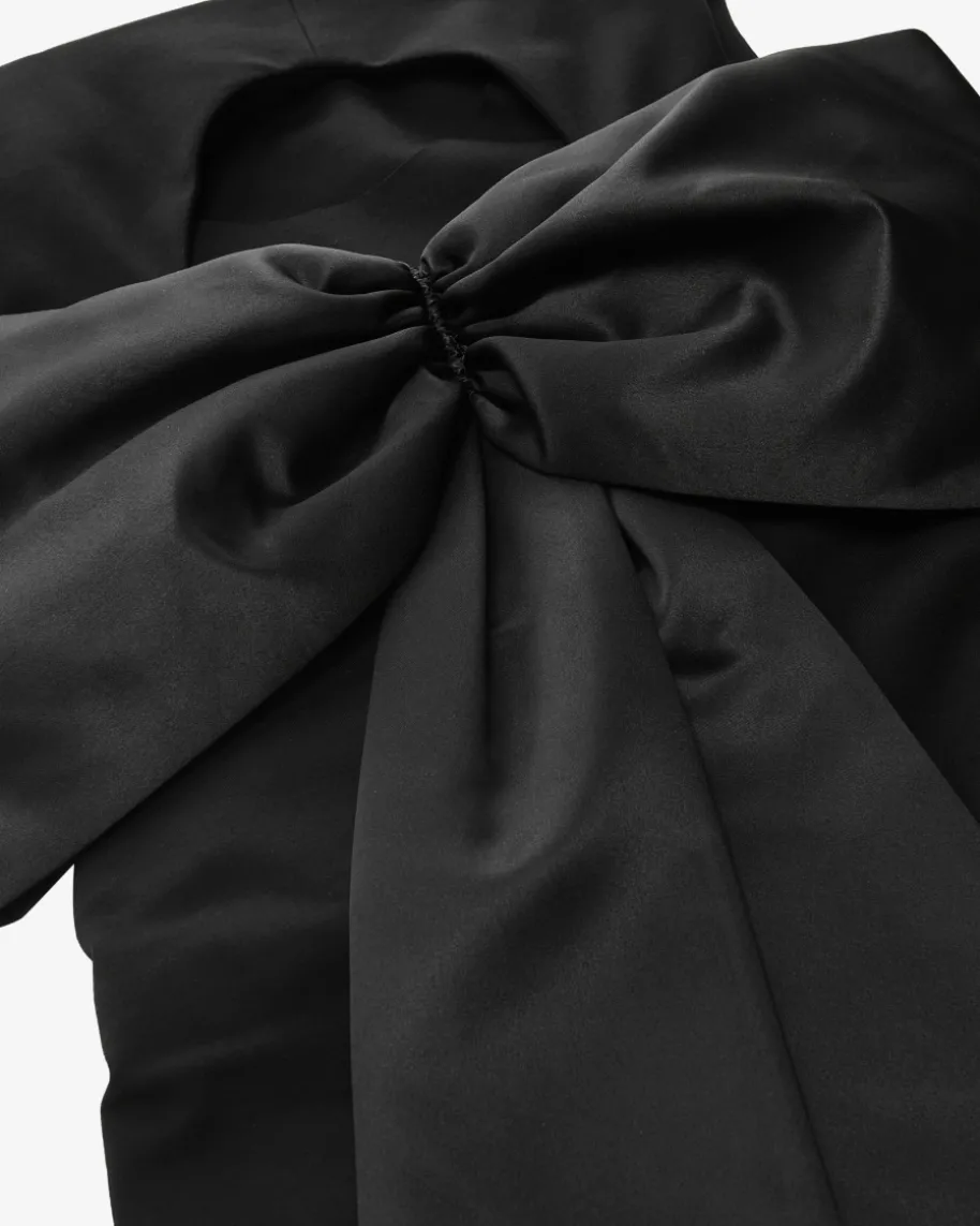 Emotional Essence Kleid für Damen von Dorothee Schumacher in Schwarz. FemininePower aus Deutschland – Dorothees Looks verbinden Stärke mit verspielterEleganz. Auch dieses Modell präsentiert sich mit schmaler Passform und geraffterTaille, die eine feminine Silhouette zaubert. Die extravagante Schleifen-Applikation mit langen Bändern aus edel changierendem Satin rundet den elegantenAbend-Look gekonnt ab.