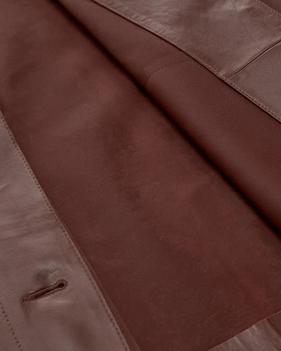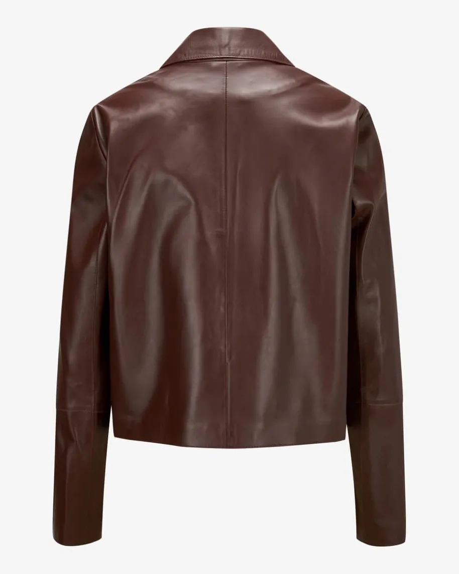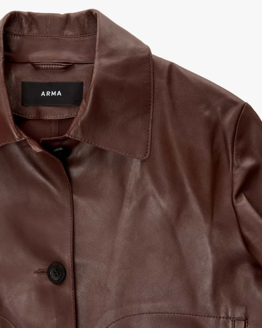 Emy Lederjacke für Damen von Arma in Mahagoni. Das Modell begeistert durch dieVerwendung hochwertiger Lammleder-Qualität, welche ein edles Gesamtbild kreiert.Zugleich avanciert die Jacke durch das cleane Design sowie der Ziernähte zumtrendsicheren Alltags-Favoriten.