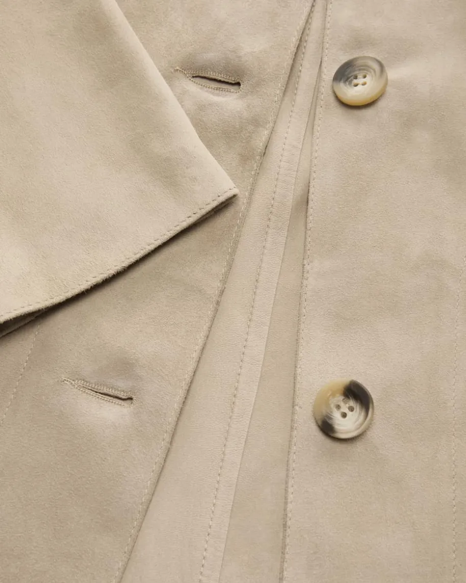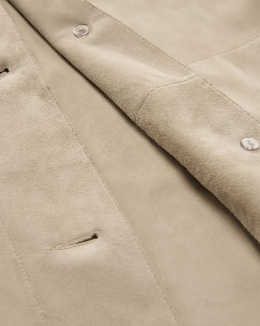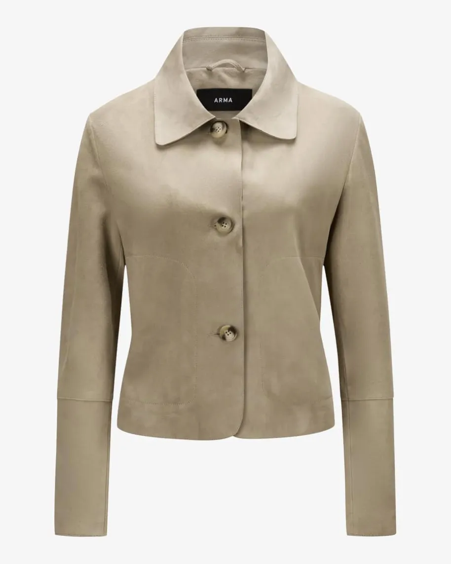 Emy Lederjacke für Damen von Arma in Beige. Das Modell begeistert durch dieVerwendung von hochwertigem Ziegenvelours, welches nicht nur eine weiche Haptikverspricht, sondern auch ein edles Gesamtbild kreiert. Zugleich avanciert dieJacke durch das modische Hemd-Design sowie feinen Ziernähten zum trendsicherenAlltags-Favoriten.