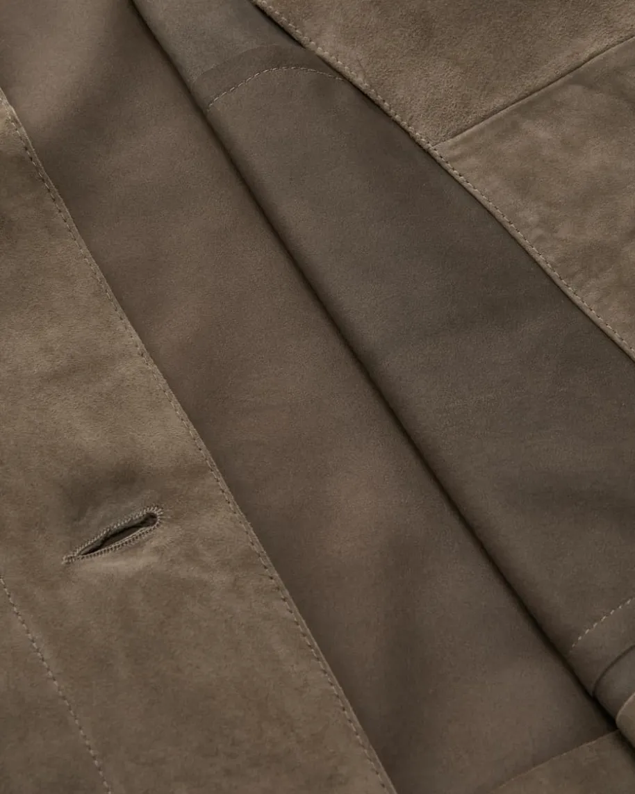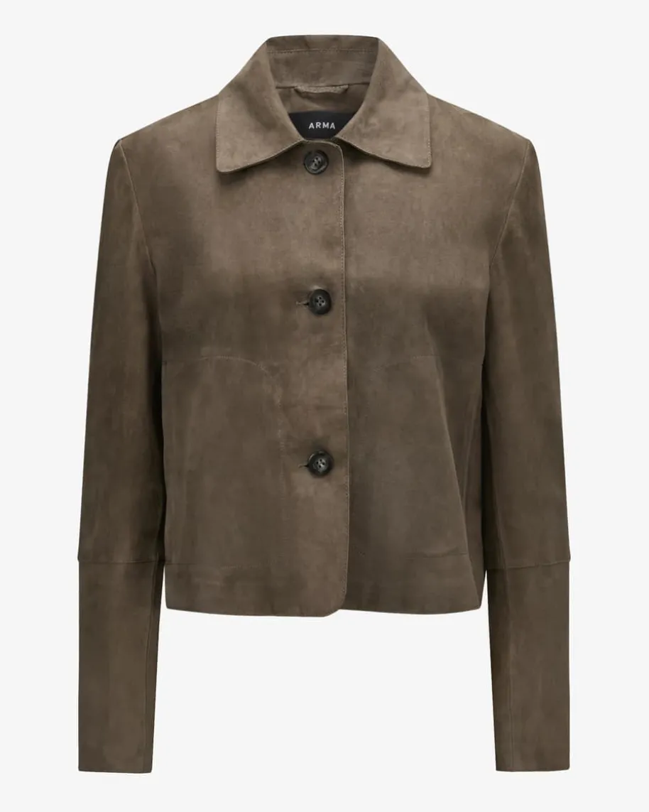 Emy Lederjacke für Damen von Arma in Graubraun. Das Modell begeistert durch dieVerwendung von hochwertigem Ziegenvelours, welches nicht nur eine weiche Haptikverspricht, sondern auch ein edles Gesamtbild kreiert. Zugleich avanciert dieJacke durch das modische Hemd-Design sowie feinen Ziernähten zum trendsicherenAlltags-Favoriten.