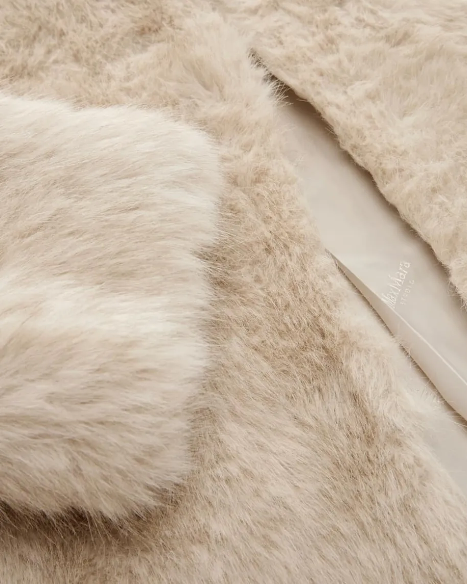 Eros Kunstfellmantel für Damen von Max Mara Studio in Beige. Das Modellbegeistert durch die besonders weiche Kunstfell-Aufmachung, welche einextravagantes Gesamtbild kreiert und jedem Herbst-Look einen besonderen Touchverleiht – Ein einzigartiges Statement-Piece.