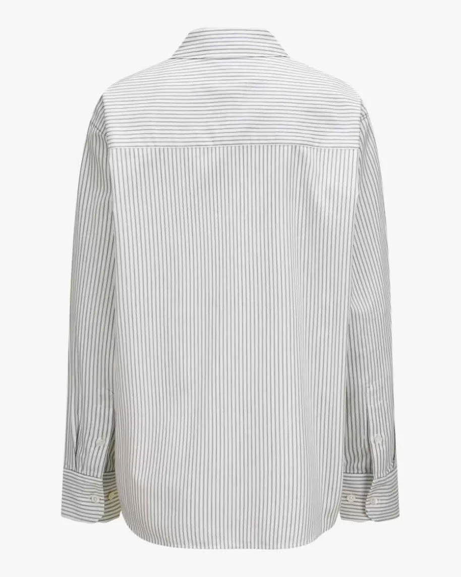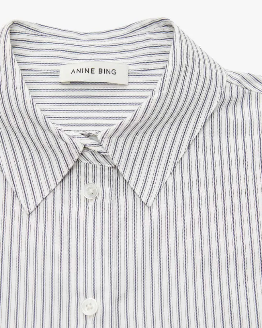 Essie Hemdbluse für Damen von Anine Bing in Weiß und Navy. 2012 in Los Angelesgegründet, vereint das Label skandinavischen Minimalismus mit amerikanischerCoolness. Das Modell in hochwertiger Baumwoll-Qualität überzeugt in gestreiftemDessin, während die schlichte Aufmachung ein zeitloses Essential kreiert dassich vielseitig kombinieren lässt.