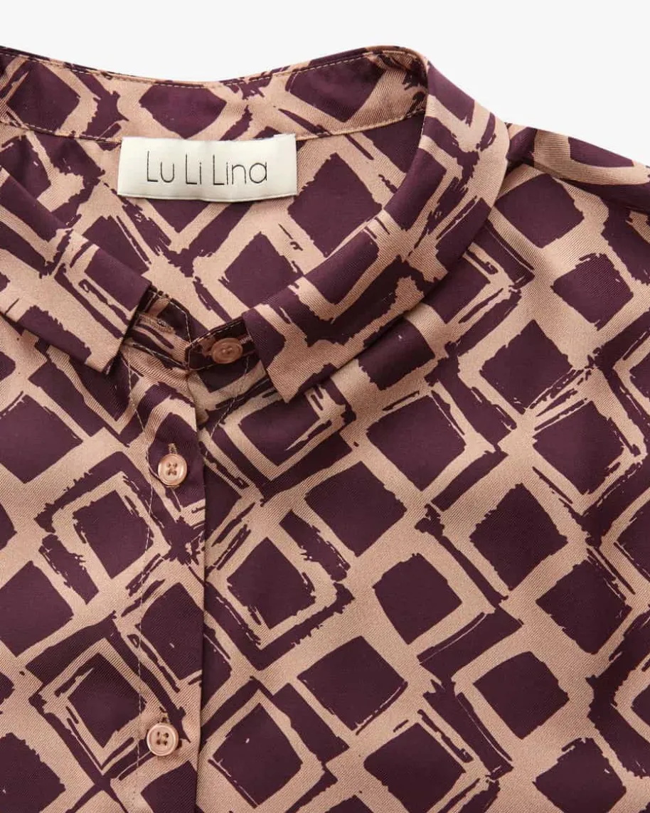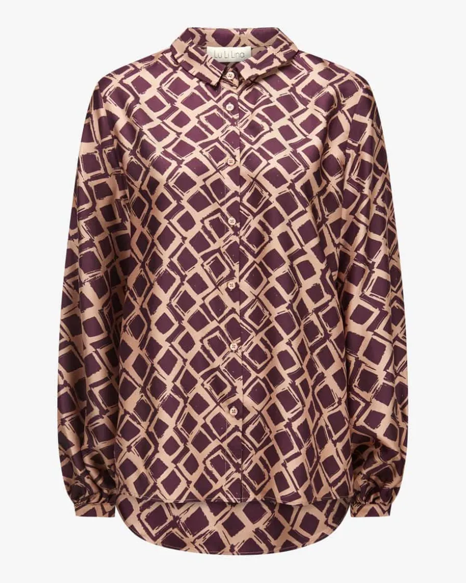 Eva Seidenbluse für Damen von Lu Li Lina in Cherry und Beige. Die fließendeSeiden-Qualität verleiht dem Modell einen edlen Look, während das Allover-Dessineinen modischen Eyecatcher kreiert. Klassische Hemdblusen-Details runden denfemininen Style harmonisch ab.