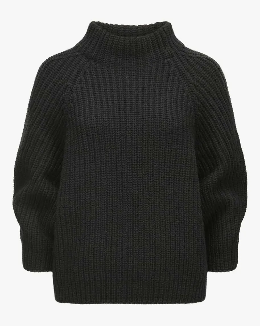 Fallou Cashmere-Pullover für Damen von Iris von Arnim in Schwarz. Das schlichteStrick-Modell mit geripptem Perlfangmuster überzeugt durch die verkürztenRaglanärmel und den breiten Stehkragen mit modernem Flair, während diehochwertige Cashmere-Verarbeitung weichen Griff verspricht.