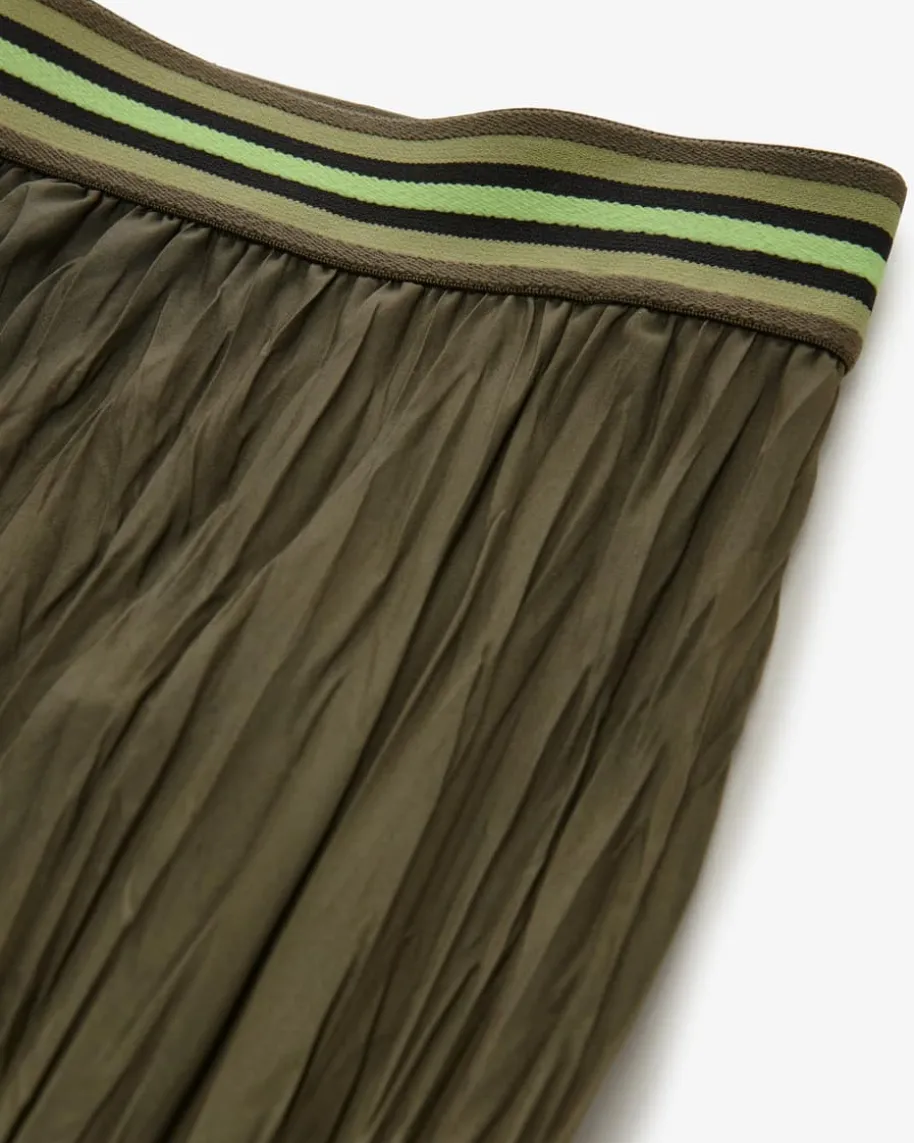 Faltenrock für Damen von Marc Cain in Oliv, Hellgrün und Lemon. Marc Cainverbindet Ästhetik und Kunst mit Lässigkeit und Natürlichkeit. InnovativeSchnitte und eine farbenfrohe Palette prägen das deutsche Label. Auch diesesleichte Modell präsentiert sich mit raffiniertem Crinkle-Effekt und modischemFarbverlauf, während der elastische Bund mit Streifenmuster den modischenStatement-Look gekonnt abrundet.