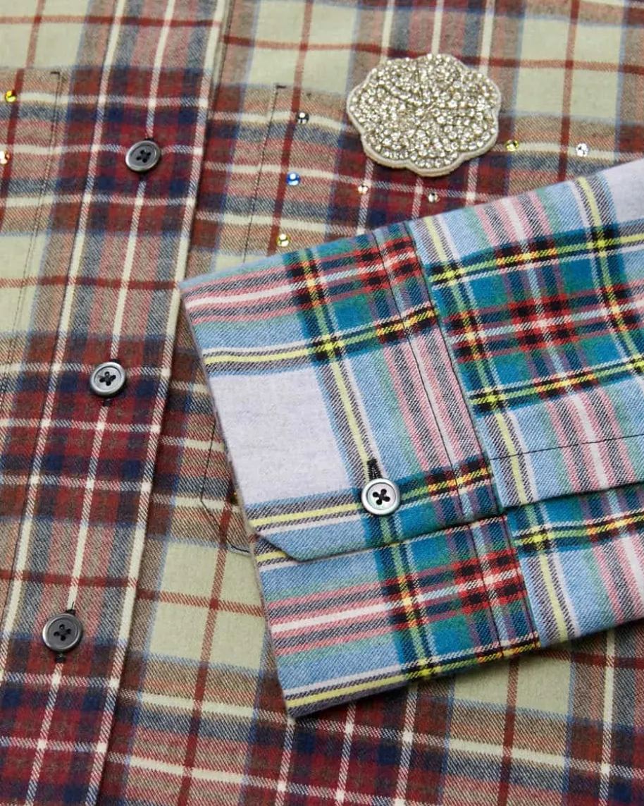 Flanellbluse für Damen von Odeeh in Bunt. Das deutsche Designerduo hinter Odeehverbindet handwerkliche Präzision mit expressiven Prints und Couture-Flair –Made in Germany. Das Modell in weichem Griff und hochwertiger Baumwoll-Qualitätüberzeugt mit buntem Schmucksteinbesatz und glitzernder Brosche, während dasKaro-Dessin den Gesamtlook harmonisch abrundet.