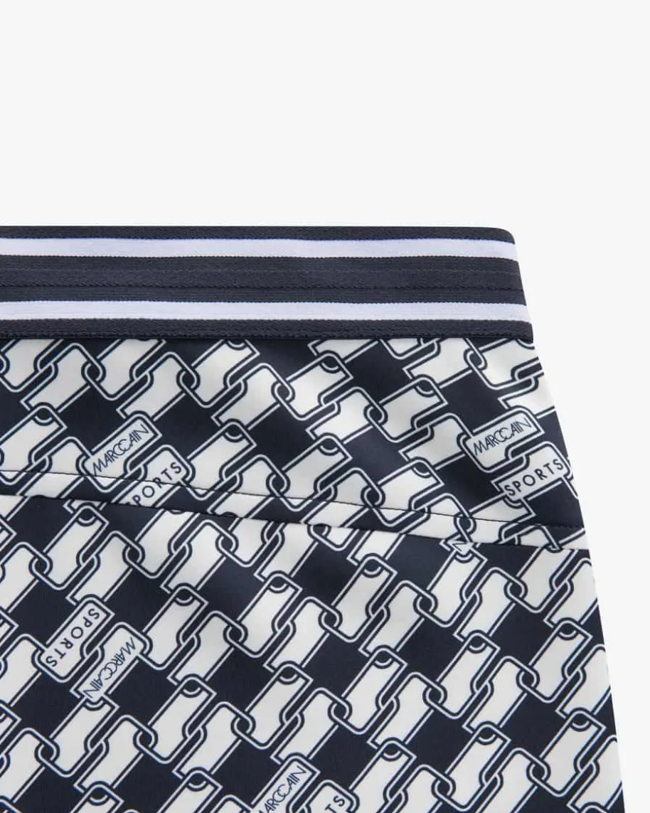 Frederica 7/8-Hose Feminine Fit Regular Waist für Damen von Marc Cain in Navyund Weiß. Das Modell in schmaler, ausgestellter Passform überzeugt mitelastischem Material, während das grafische Muster den Gesamtlook sportiv inSzene setzt.