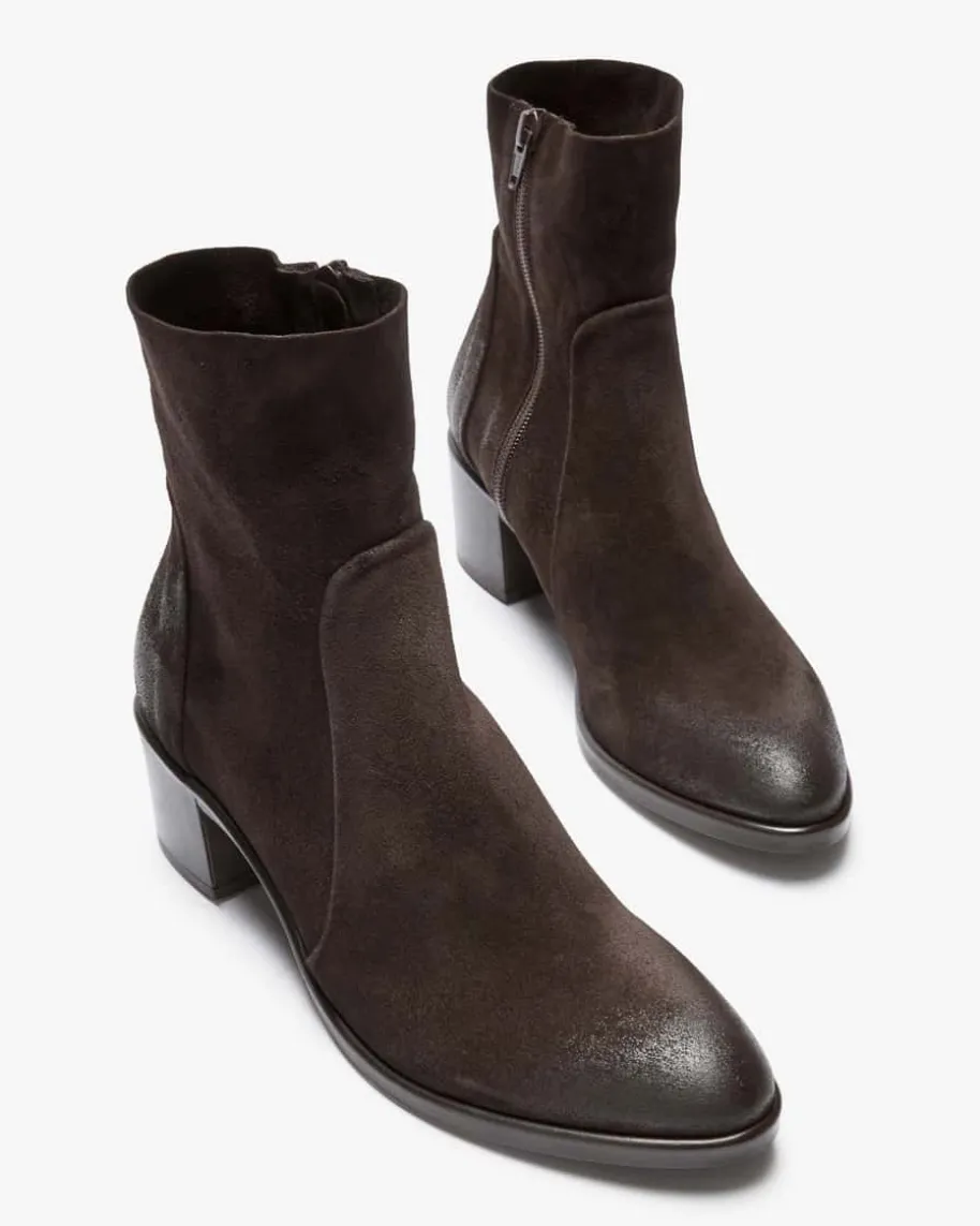 Gemma Stiefeletten für Damen von Strategia in Dunkelbraun. Gefertigt aushochwertigem Velourleder punktet das Modell neben der klassischen Aufmachungauch mit einer angenehmen Haptik. Die spitze Form rundet das Gesamtbild zugleichmit femininer Eleganz ab.