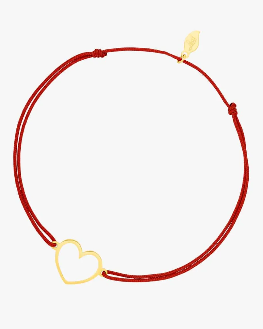 Gentle Heart Glücksbändchen für Damen von Leaf in Rot und Gold. Ein charmantesGeschenk für Ihre Liebste – Das filigrane Schmuckstück besticht dank desminimalistischen Herz-Anhängers aus 14 Karat Gelbgold als besonderes Highlight,das sich perfekt für stilvolle Lagen-Looks eignet.