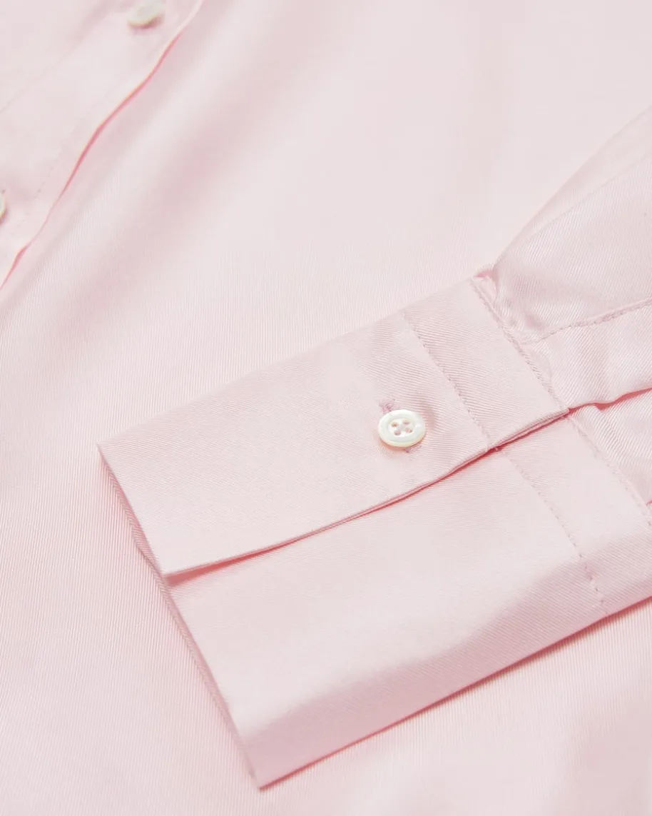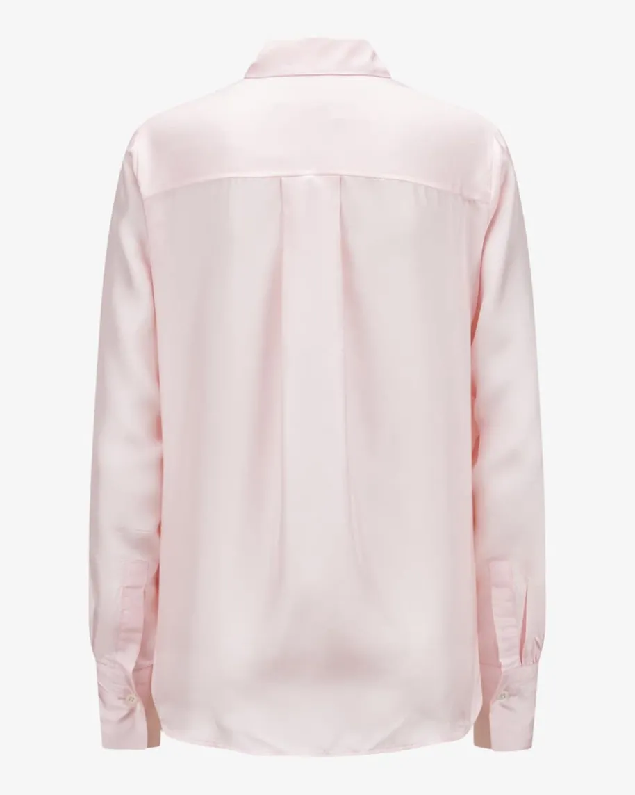 Gilda Seiden-Hemdbluse für Damen von Edelle in Rosé. Das Modell in changierenderSeiden-Twill-Qualität besticht dank der klassischen Passform mit dezentverlängerter Rückseite als modischer und luxuriöser Favorit – ein stilvollerBegleiter für elegante Looks.