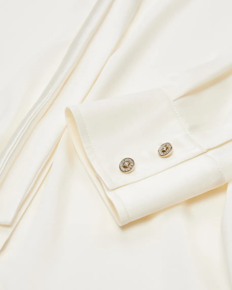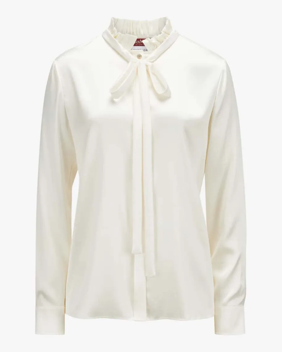 Gilles Seidenbluse für Damen von Max Mara Studio in Champagner. Weiblich,modern, tragbar – Max Maras femininere Linie. Auch dieses Modell in leichterSeiden-Qualität überzeugt mit weicher Silhouette, welche sich perfekt für Alltagund Office stylen lässt. Das changierende Design rundet das Gesamtbild gekonntab.