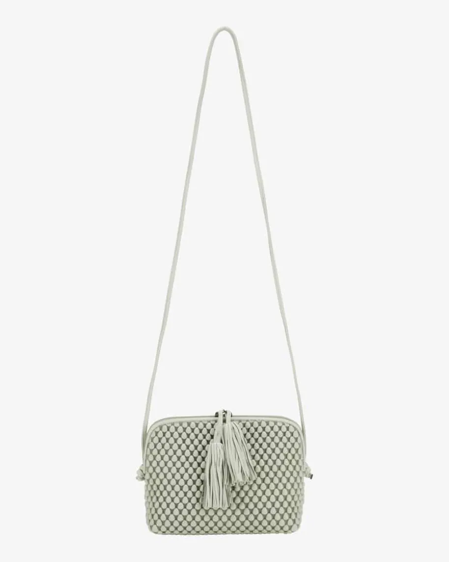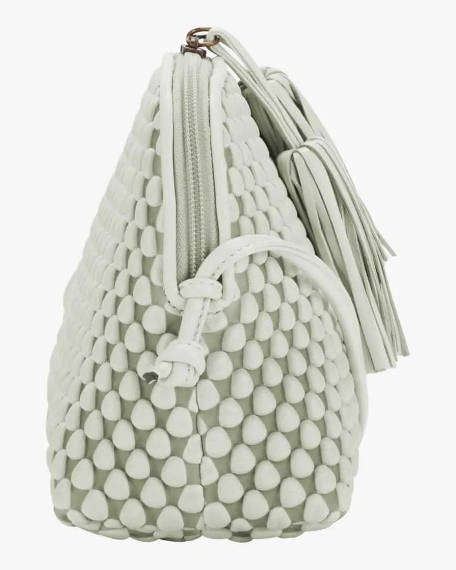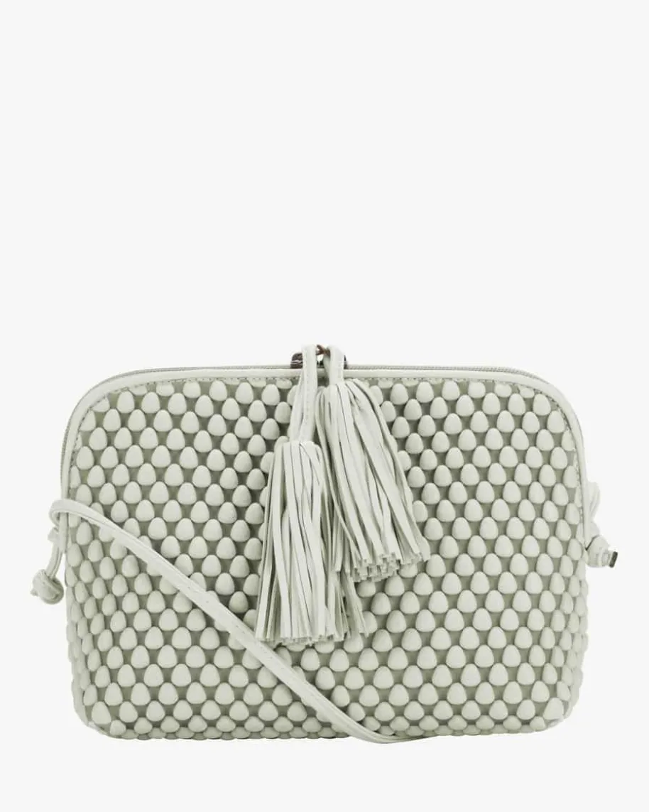 Gizmo Umhängetasche für Damen von Tissa Fontaneda in Hellgrau. Das 2010gegründete Label vereint Handwerkliches Können und Liebe zum Detail. Die soforterkennbare „Bubble Bag“ ist zum Markenzeichen der Kollektion Tissa Fontanedageworden. Auch dieses Modell begeistert in charakteristischer Aufmachung mitstrukturierter Optik, während die Quasten-Applikation den letzten Schliffverleiht.