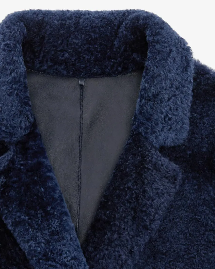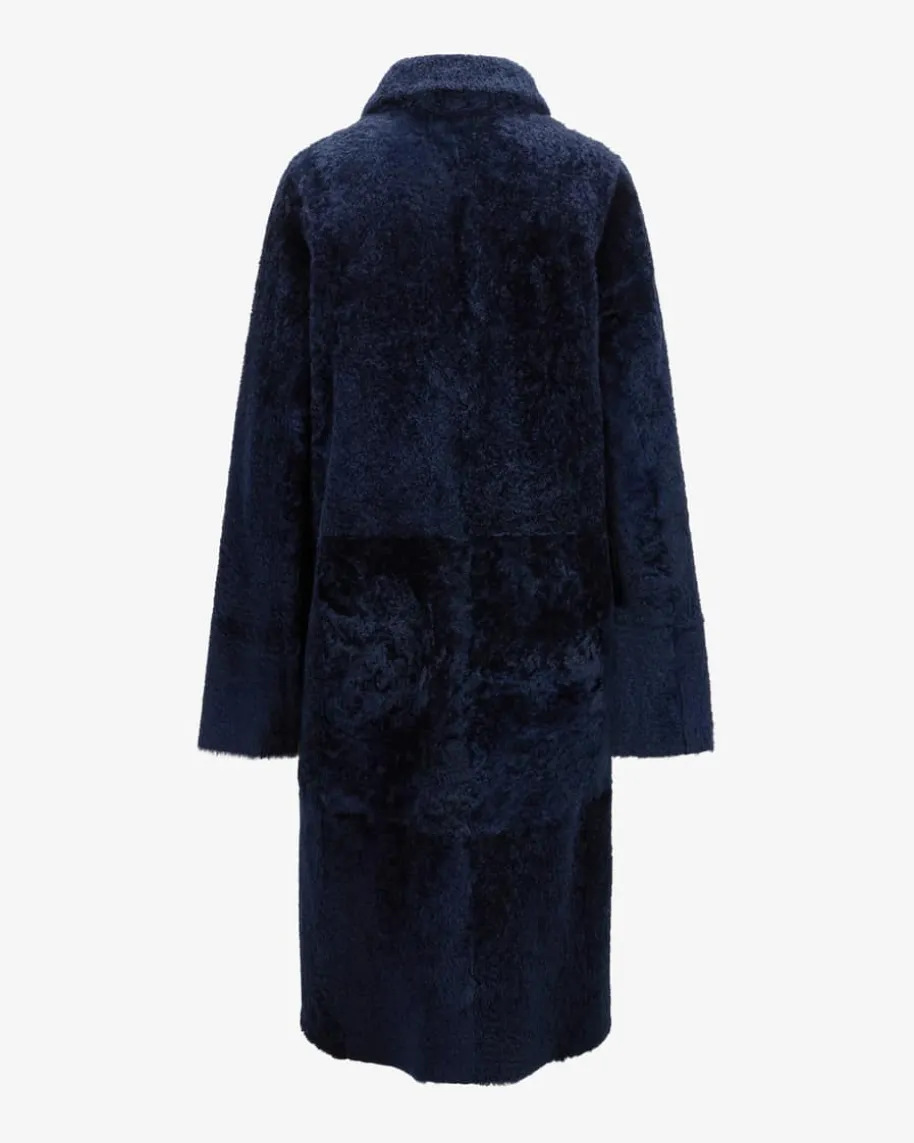 Goli Wende-Fellmantel für Damen von Nove in Dunkelblau. Das Modell begeistertmit derpraktischen Wende-Funktion. Während die hochwertige Schafsfell-Seite mit derwolligen Optik punktet, verleiht die die Leder-Innenseite dem Gesamtbild eineedle Note. Das klassische Design schafft zudem den letzten Schliff.
