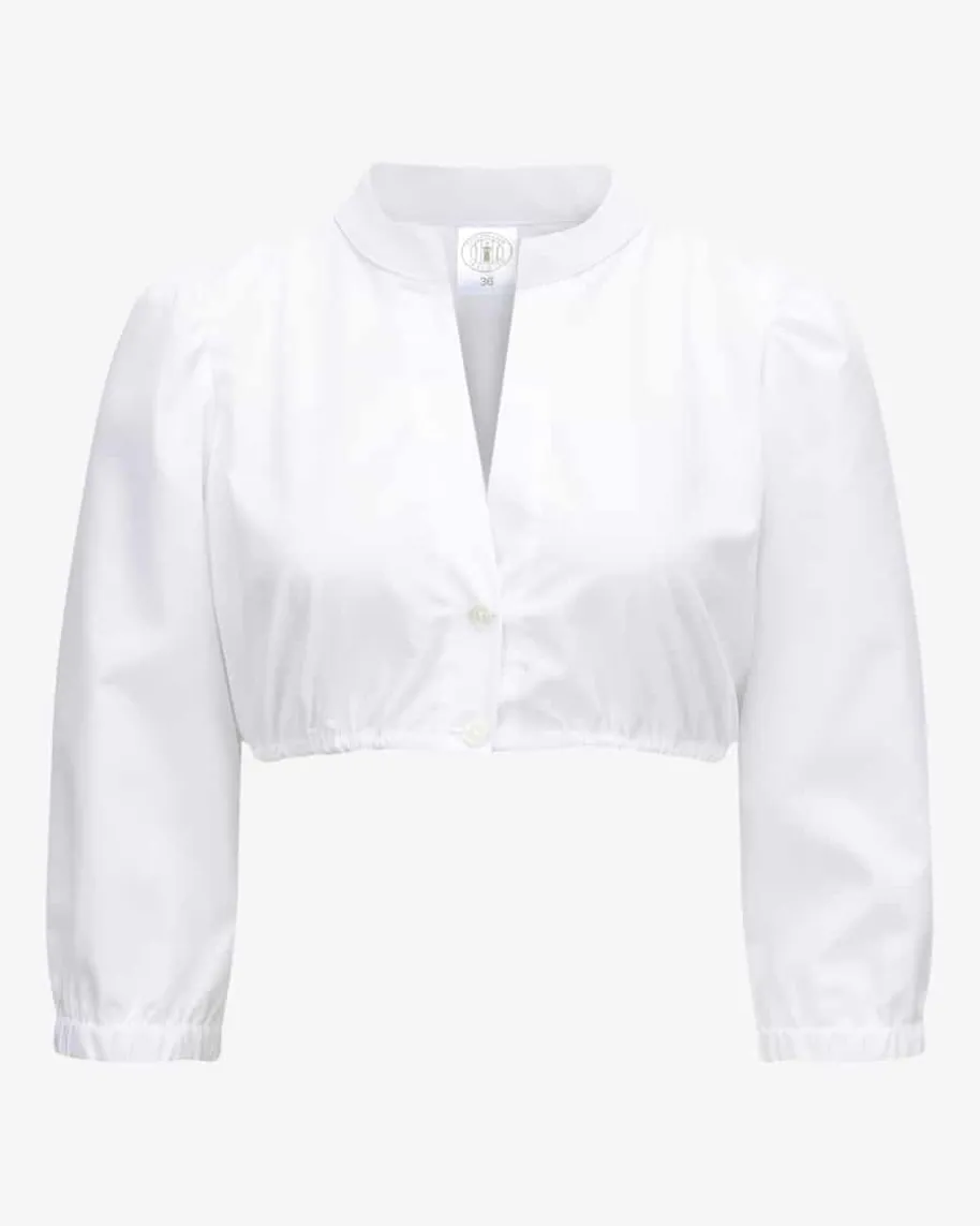 Gosausee Dirndlbluse für Damen von Tostmann in Weiß. Das feminineModell mit ¾-Arm erhält dank dezenter Puff-Ärmel und schlichtem Stehkragen einentraditionellen Charme. ElastischeBündchen sorgen für angenehmen Tragekomfort undrunden den stilvollen Trachtenlook perfekt ab.
