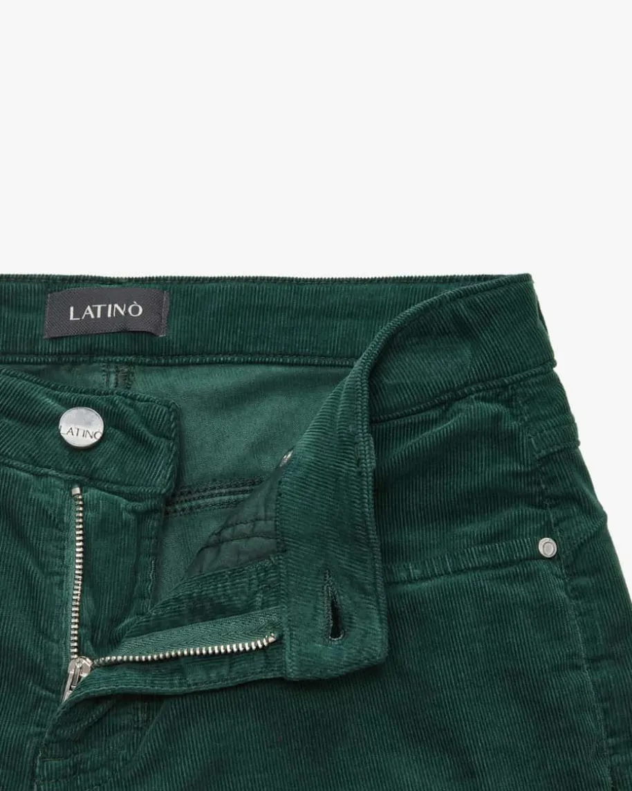 Guenda 7/8-Samthose aus für Damen von Latino in Flaschengrün. Das Modellbesticht dank dem dezent ausgestellten Bein mit optimaler Passform, während dieSamt-Qualität optische wie auch haptische Highlights setzt. Die Logo-Detailsrunden den Gesamtlook labeltypisch ab.