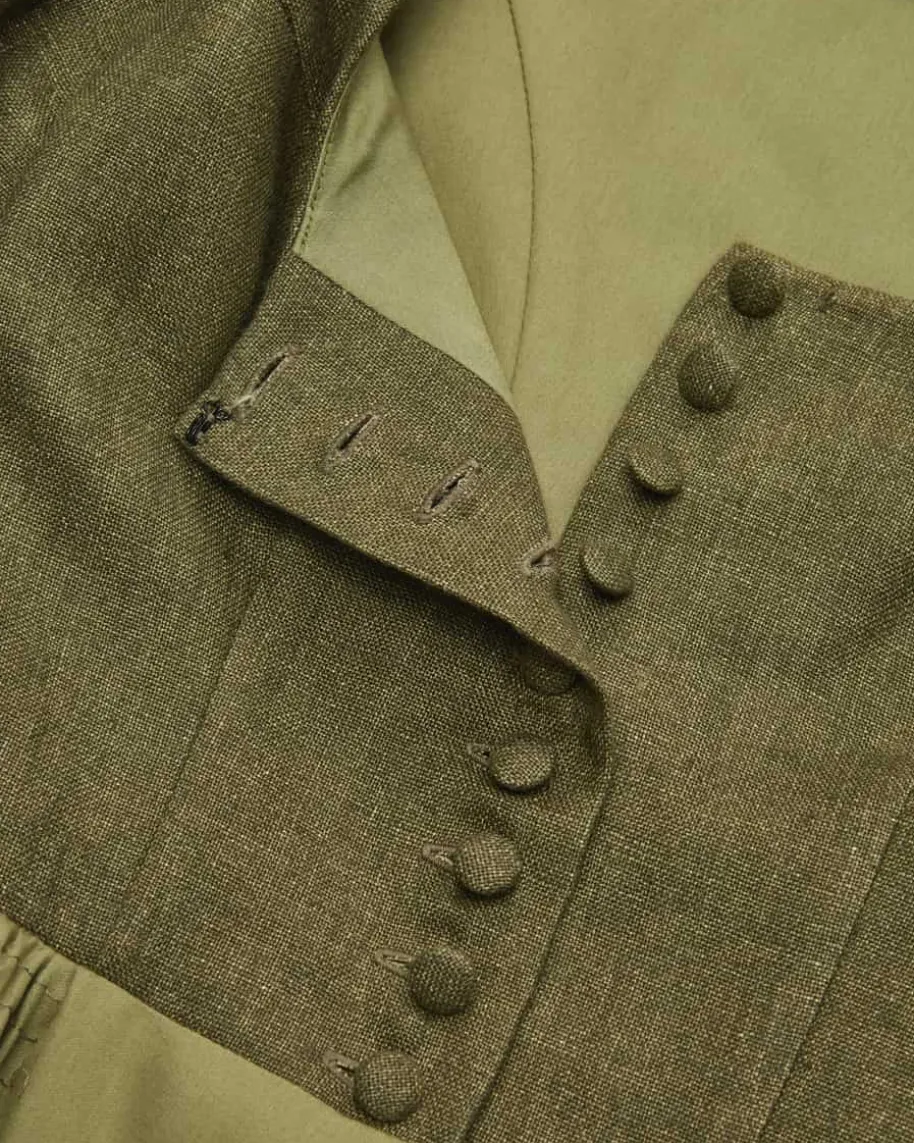 Guila Midi-Leinendirndl mit Seidenschürze für Damen von Giacomelli Trachten inKhaki. Die Marke steht für handgefertigte Trachtenmode mit alpiner Authentizitätund viel Liebe zum Detail – gefertigt in Österreich. Auch dieses Modellpräsentiert sich dank femininen Puffärmeln und tonigen Details in traditionellerAufmachung. Die hochwertige Seidenschürze in dezent changierender Optik rundetdas Trachten-Design gekonnt ab.