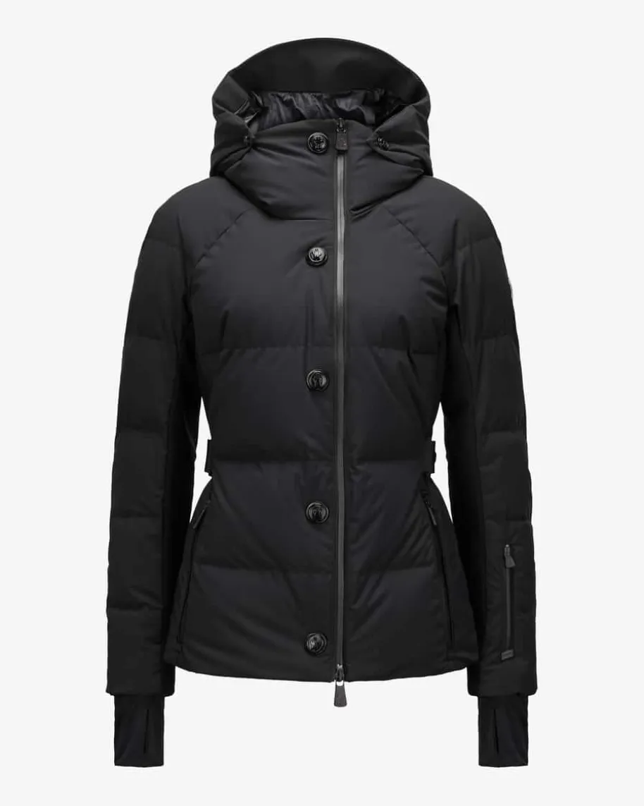 Guyane Skijacke für Damen von Moncler Grenoble in Schwarz. Das Modell derWintersport-Linie präsentiert sich dank tailliertem Schnitt mit abnehmbarenTaillengürtel in femininer Aufmachung, während die changierende Stepp-Optik mitoptimal isolierender Daunen-Feder-Füllung und zahlreiche weitere funktionaleDetails einen Favoriten für sportliche Wintertage schaffen.