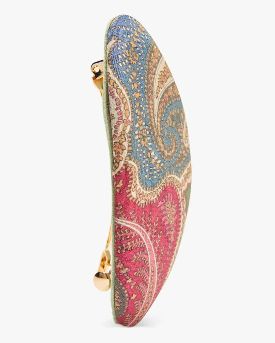 Haarspange für Damen von Etro in Himbeere, Taubenblau und Creme. Das Modell ausedler Seiden-Qualität avanciert zum stilvollen Accessoire, das jeder Frisur dasgewisse Etwas verleiht. Zugleich setzt das labeltypische Paisley-Muster dasGesamtbild gekonnt in Szene.