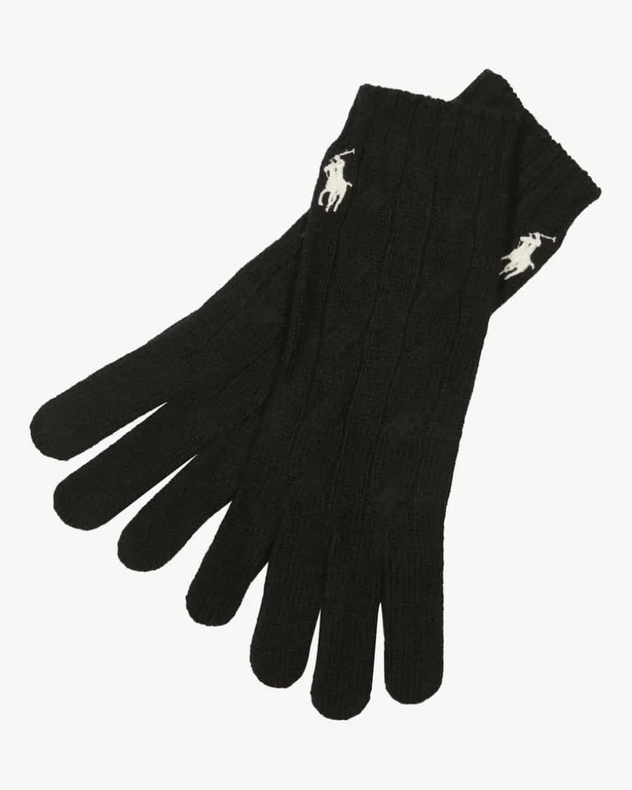 Handschuhe für Damen von Polo Ralph Lauren in Schwarz. Das Modell begeistertdank des hochwertigen Woll-Cashmere-Mix mit angenehmem Tragegefühl, während daszeitlose Zopfstrick-Design mit Rippstrick-Bündchen einen perfekten Begleiter fürkalte Tage kreiert.