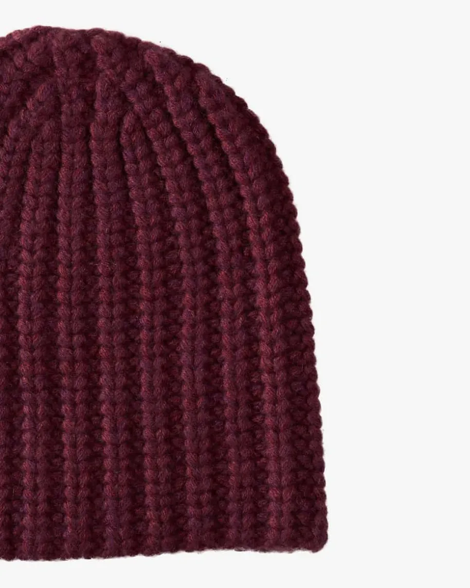 Heidi Cashmere-Mütze für Damen von Warm-Me in Bordeaux. Das Modell begeistertdank der hochwertigen Cashmere-Qualität mit angenehmen Tragemomenten, währenddas bicolor Grobstrick-Design einen modernen Casual-Begleiter für kalte Tageschafft.