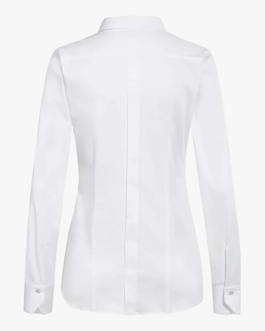 Hemdbluse für Damen von Soluzione in Weiß. Das Modell überzeugt durch einedezent taillierte und feminine Silhouette. Dank hochwertigem Materialmix wirdfür eine optimale Passform und hohen Tragekomfort gesorgt, während Hemdkragenund Knopfleiste durch grobe Absteppungen überzeugen. Modische Details wie dieovale Form der Knöpfe, die gelegte Falte auf der Rückseite und der abgerundeteSaum vollenden den stilvollen Look der Bluse.