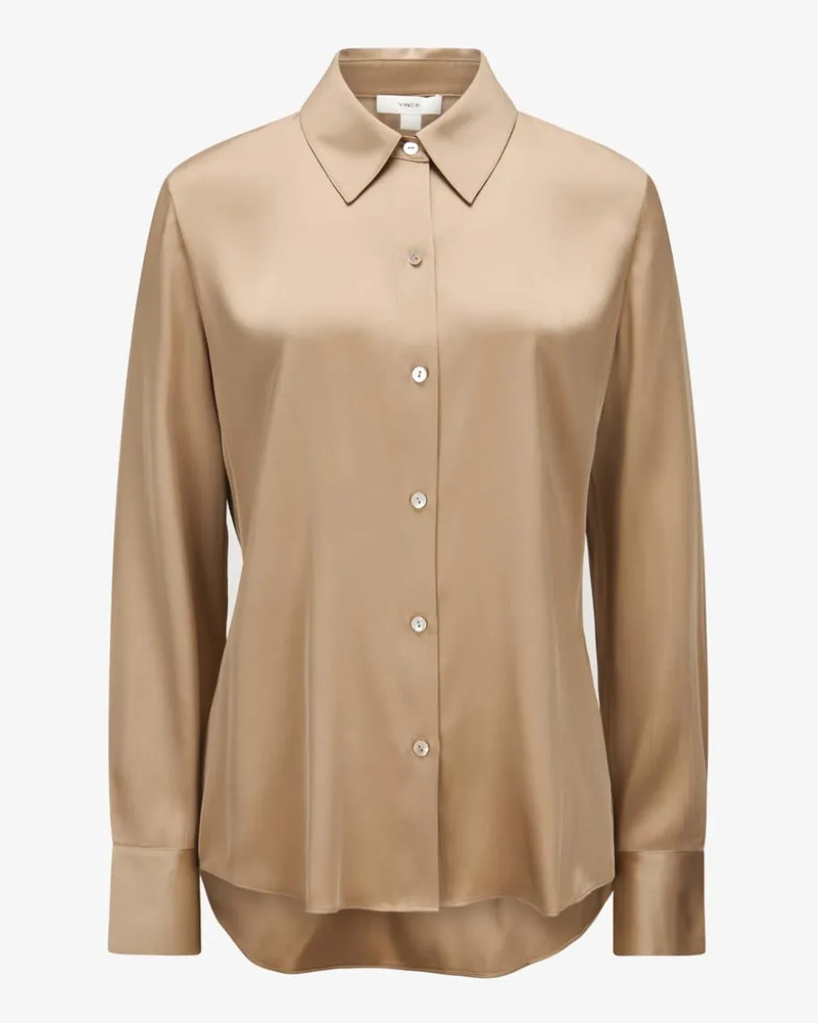 Hemdbluse für Damen von Vince in Sand. Das Label steht für kalifornischinspirierte Mode mit mühelosem Stil – raffinierte, unkomplizierte Teile mitbesonderer Leichtigkeit. Auch dieses Modell punktet mit fließendem, elastischenSeiden-Mix, während klassische Details das stilvolle Modell gekonnt abrunden.