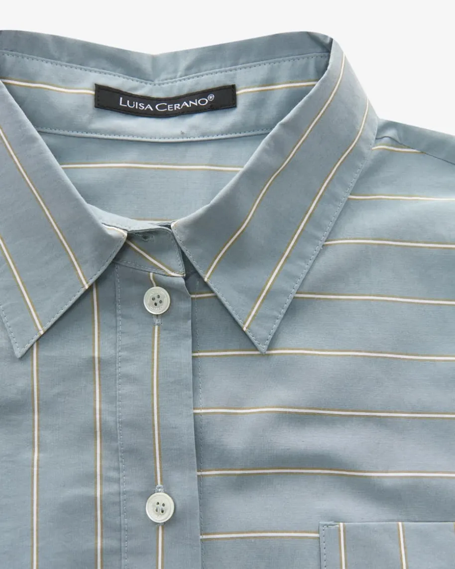 Hemdbluse für Damen von Luisa Cerano in Blaugrau. Das Modell begeistert mitleichtem Baumwoll-Mix in feiner Struktur, welche ein angenehmes Tragegefühlbeschert. Das Streifen-Dessin und klassische Details kreieren einen femininenGesamt-Look mit besonderem Touch.