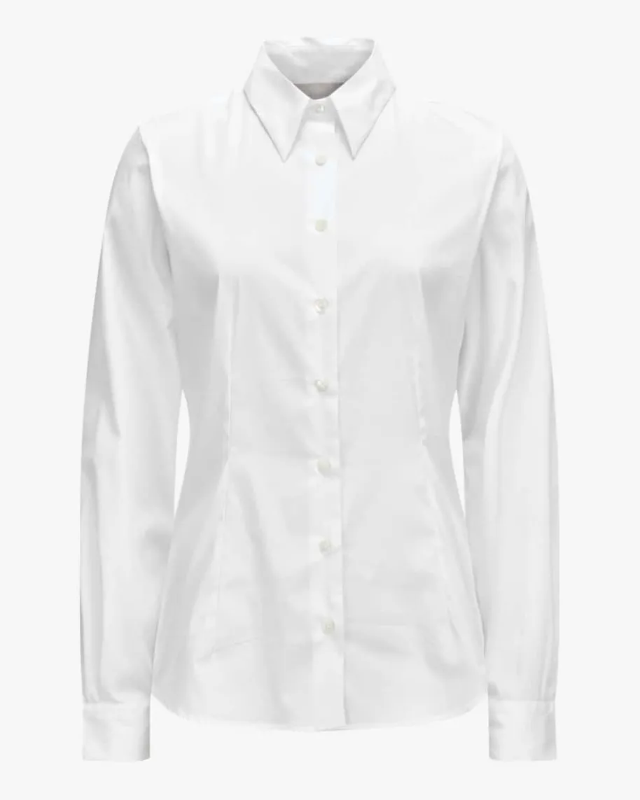 Hemdbluse für Damen von Hemisphere in Weiß. Das Modell überzeugt durch einedezent taillierte und feminine Silhouette. Dank elastischem Baumwoll-Mix wirdeine optimale Passform und hoher Tragekomfort garantiert, während Hemdkragen undKnopfleiste das Modell klassisch vollenden.