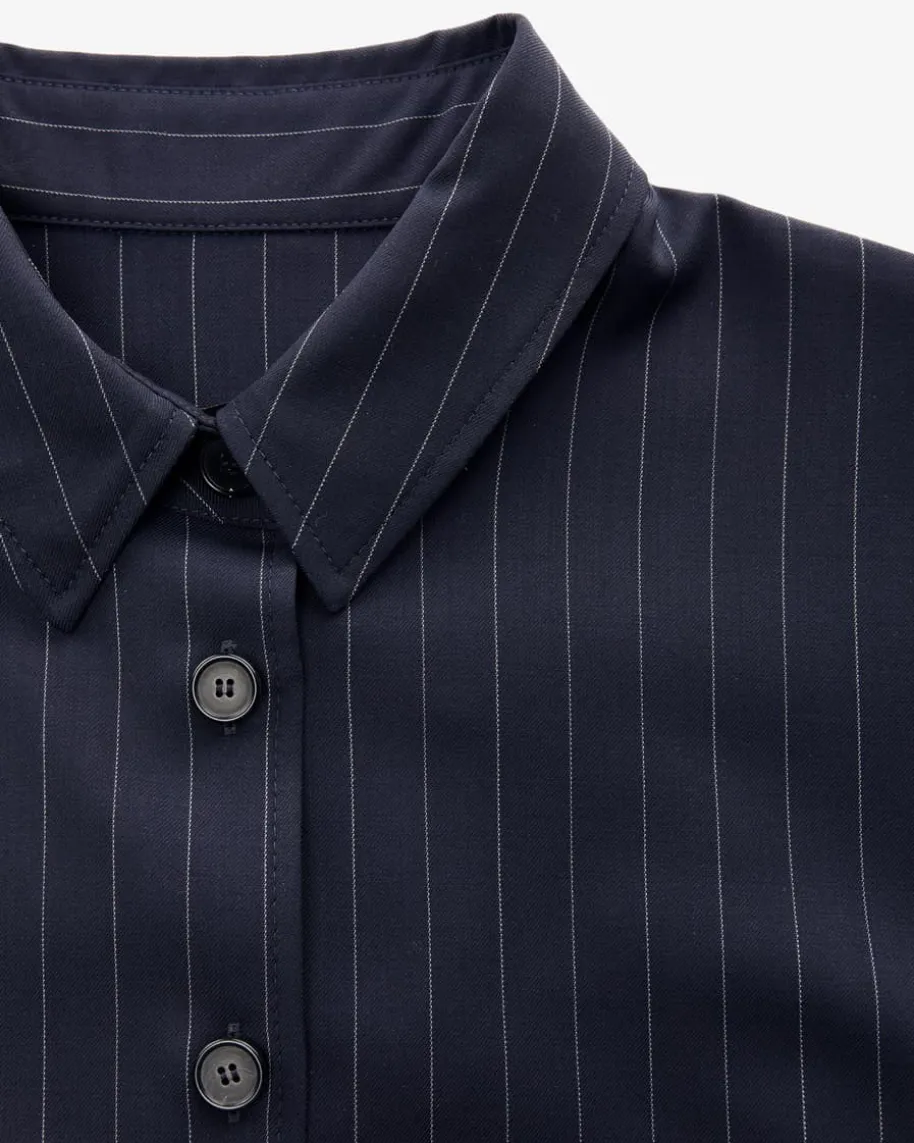 Hemdbluse für Damen von Windsor in Navy und Creme. Das Modell präsentiert sichdank der weiten Passform sowie der glatten Schurwoll-Verarbeitung als modernerFavorit mit Business-Chic-Charakter. Zugleich verleiht das stilvolleNadelstreifen-Dessin den letzten Schliff. Für einen stilsicheren Power-Auftrittkönnen Sie die dazu passende Hose kombinieren.