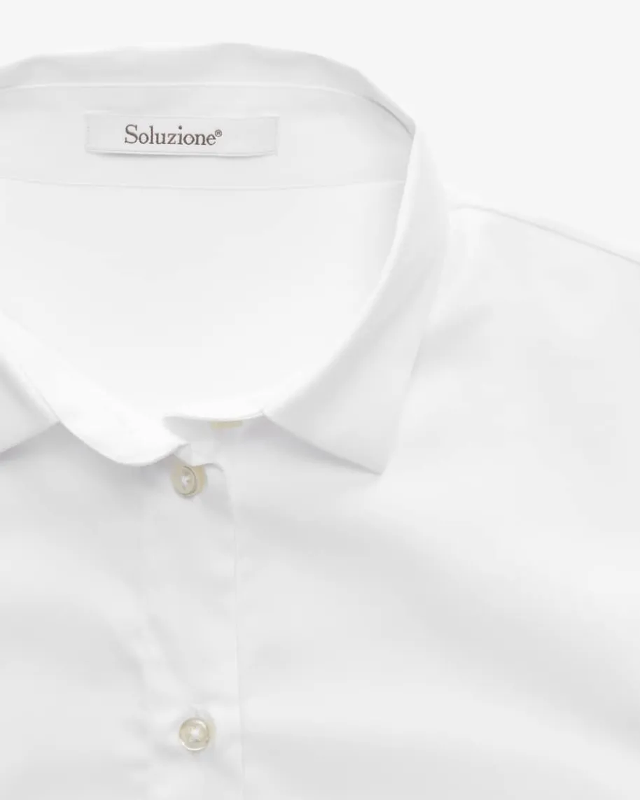 Hemdbluse für Damen von Soluzione in Weiß. Während die angenehm elastischeBaumwoll-Qualität für hohen Tragekomfort sorgt, avanciert das Modell dankmodisch legerer Passform und weiten Ärmeln zum stilvollen Begleiter mit demgewissen Etwas.