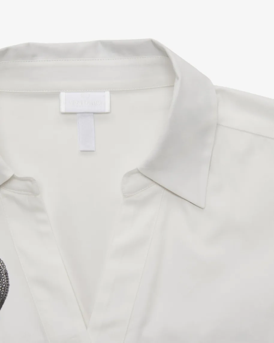 Hemdbluse für Damen von Sportalm Emotion in Weiß, Schwarz und Beige. Für dasösterreichische Modelabel stehen exklusive Designs sowie höchsteQualitätsstandards im Fokus. Auch dieses Modell überzeugt mit angenehm-leichterBaumwoll-Qualität mit Elasthan, die zusammen mit dem raffinierten Leo-Printsowie changierenden Pailletten-Applikationen einen modernen Look mit femininemTouch kreiert.