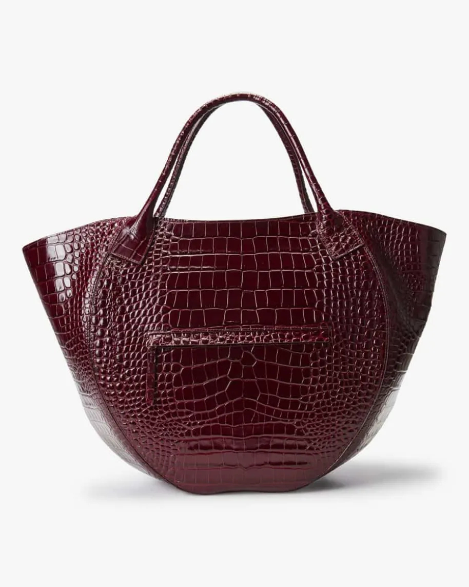 Hortensia Shopper für Damen von Wandler in Bordeaux. Die Amsterdamer Marke stehtfür moderne Handtaschen mit klaren Linien und Farbblöcken – feminin undarchitektonisch. Auch dieses Modell in Halbmondform überzeugt in hochwertigerKalbsleder-Qualität und geprägter Krokodil-Optik, während das geräumigeHauptfach und der abnehmbare Schulterriemen einen zeitlosen Begleiter schafftder sich vielseitig stylen lässt.