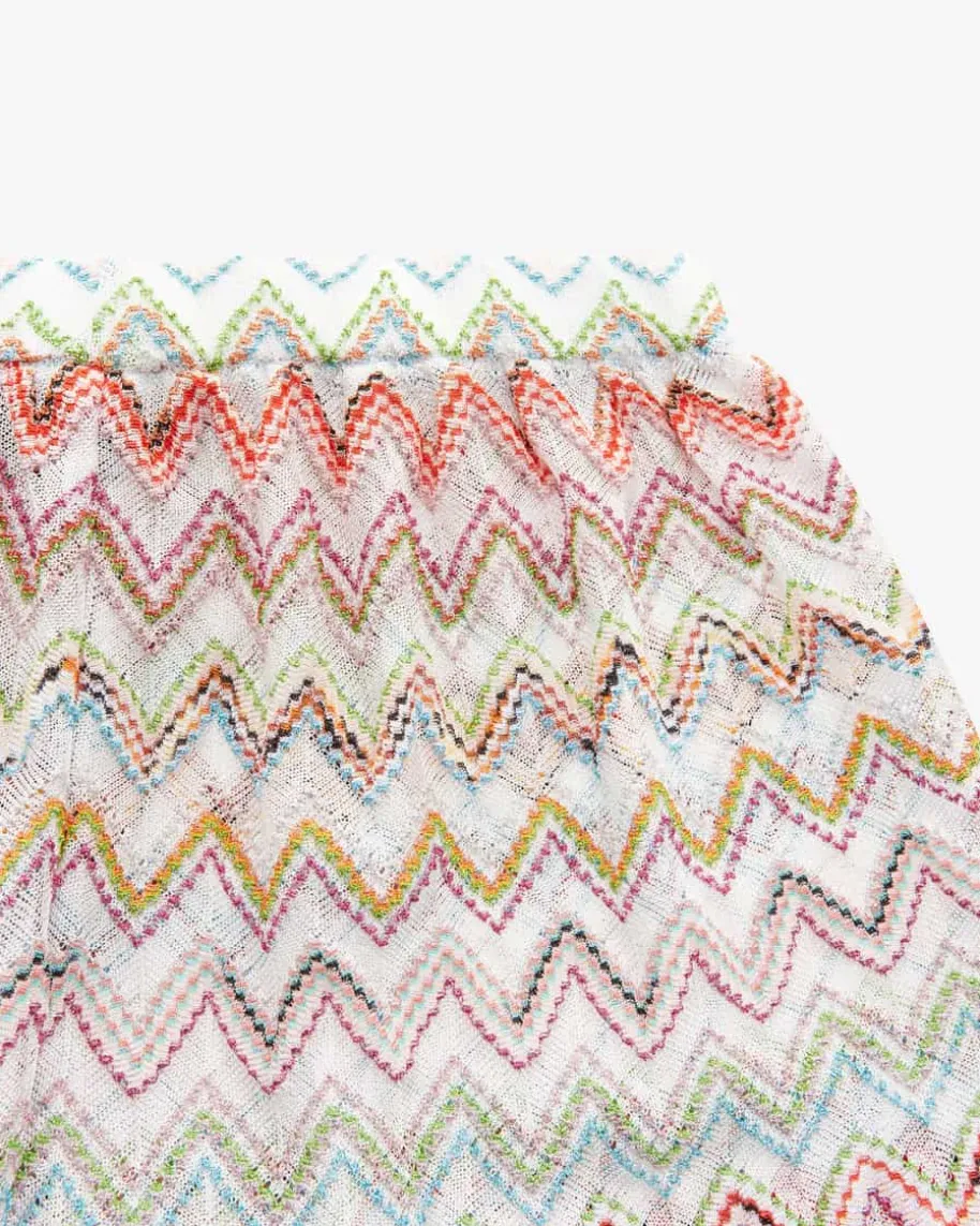 Hose für Damen von Missoni in Weiß und Bunt. Das Modell präsentiert sich imlabeltypischen Zick-Zack-Dessin, das durch die Glitzer-Details raffiniertergänzt wird. Die semitransparente Optik sorgt zudem für einen modischen Look.