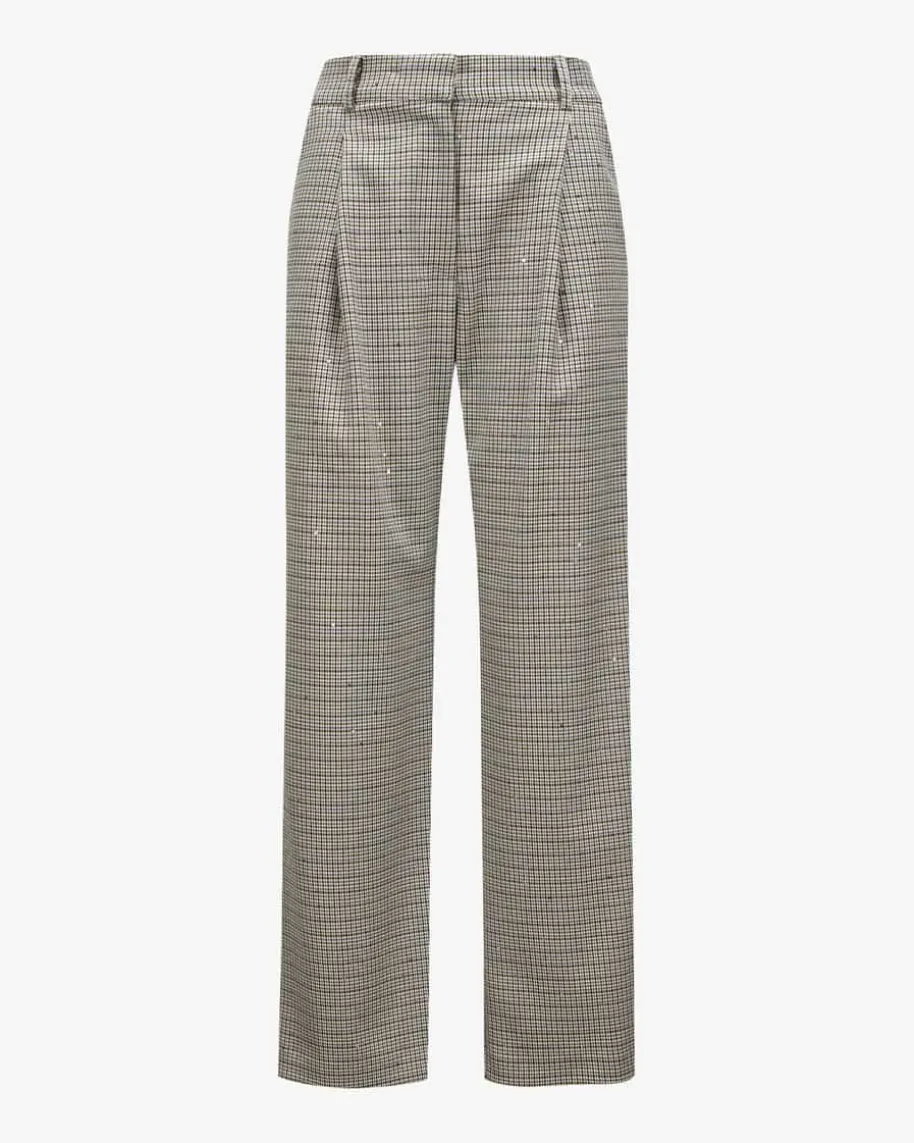 Hose für Damen von Shirtaporter in Blau, Creme und Gold. Dieses Modellpräsentiert sich mit feinem Karo-Webmuster und modisch-weitem Schnitt, währenddie Glitzer-Fasern und feine Pailletten edle Akzente setzen. Die Bundfalten undder teilelastische Bund runden den Look gekonnt ab.