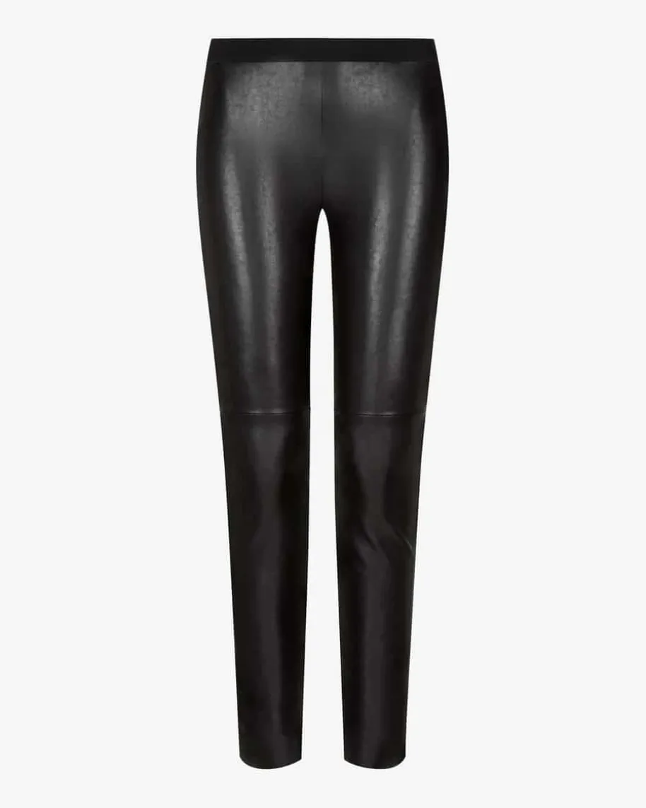 Hose für Damen von Marc Cain Essentials in Schwarz. Das schmal geschnitteneModell begeistert durch die stilvolle Leder-Optik, während der Gummibund sowiedie elastische Stoff-Qualität für eine feminine Passform sorgen. Ein ideales It-Piece für vielseitige Looks.