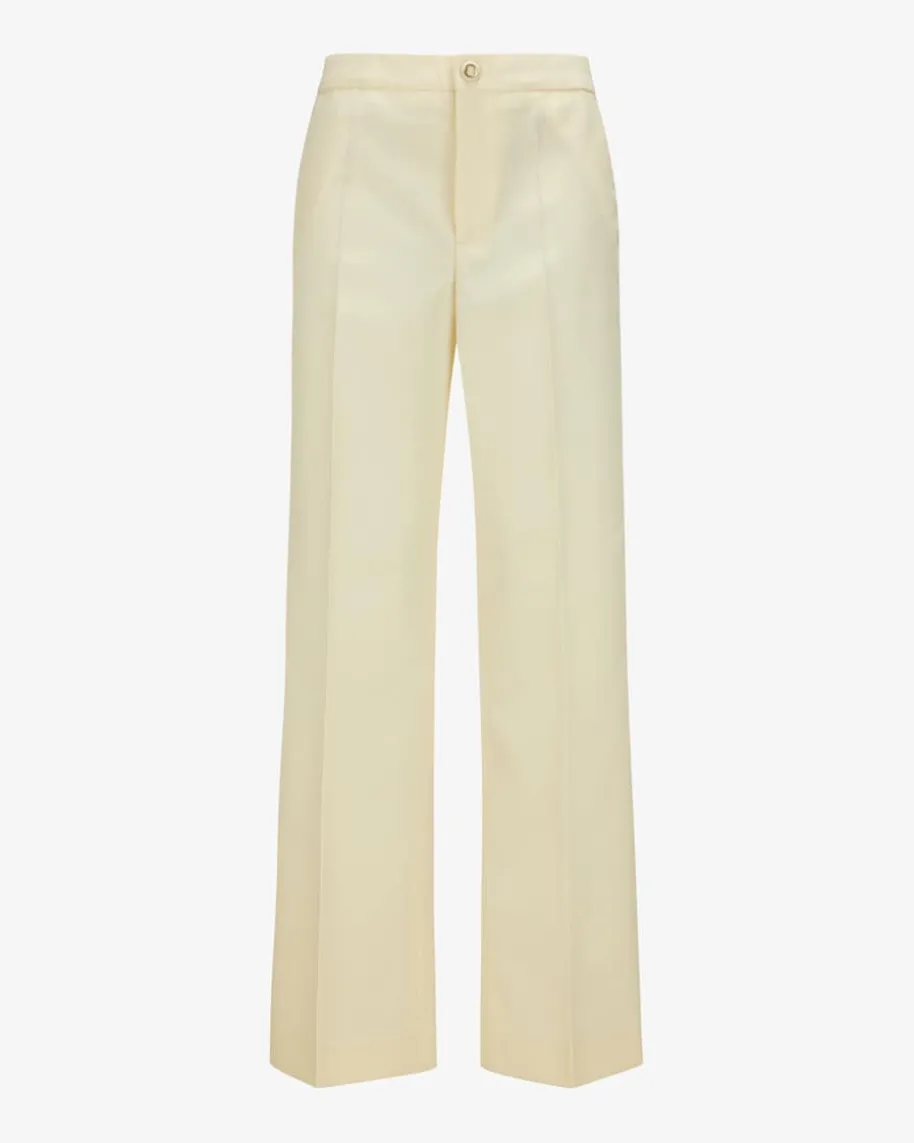 Hose für Damen von Moncler in Creme. Das Modell besticht mit weitem Bein ingerader Schnittführung sowie dem fein strukturierten Schurwoll-Mix in stilvollerAufmachung und avanciert somit zu einem zeitlosen Begleiter für klassisch-elegante Outfits.