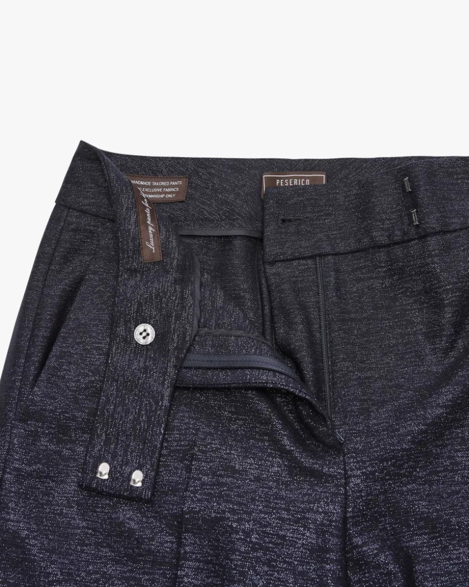Hose für Damen von Peserico in Navy. Die italienische Marke steht für feineDamenmode mit Fokus auf Materialien, Passform und Handwerkskunst. Auch diesesModell präsentiert sich mit changierender Verarbeitung und weiter Passform – Einedler Abend-Look mit dem gewissen Etwas. Das Modell kann mit dem passendenBlazer als Set getragen werden.
