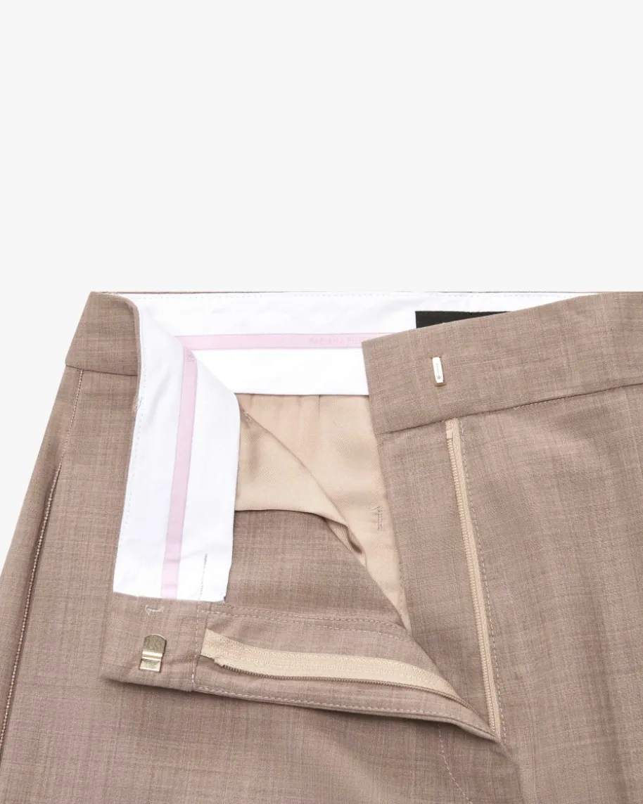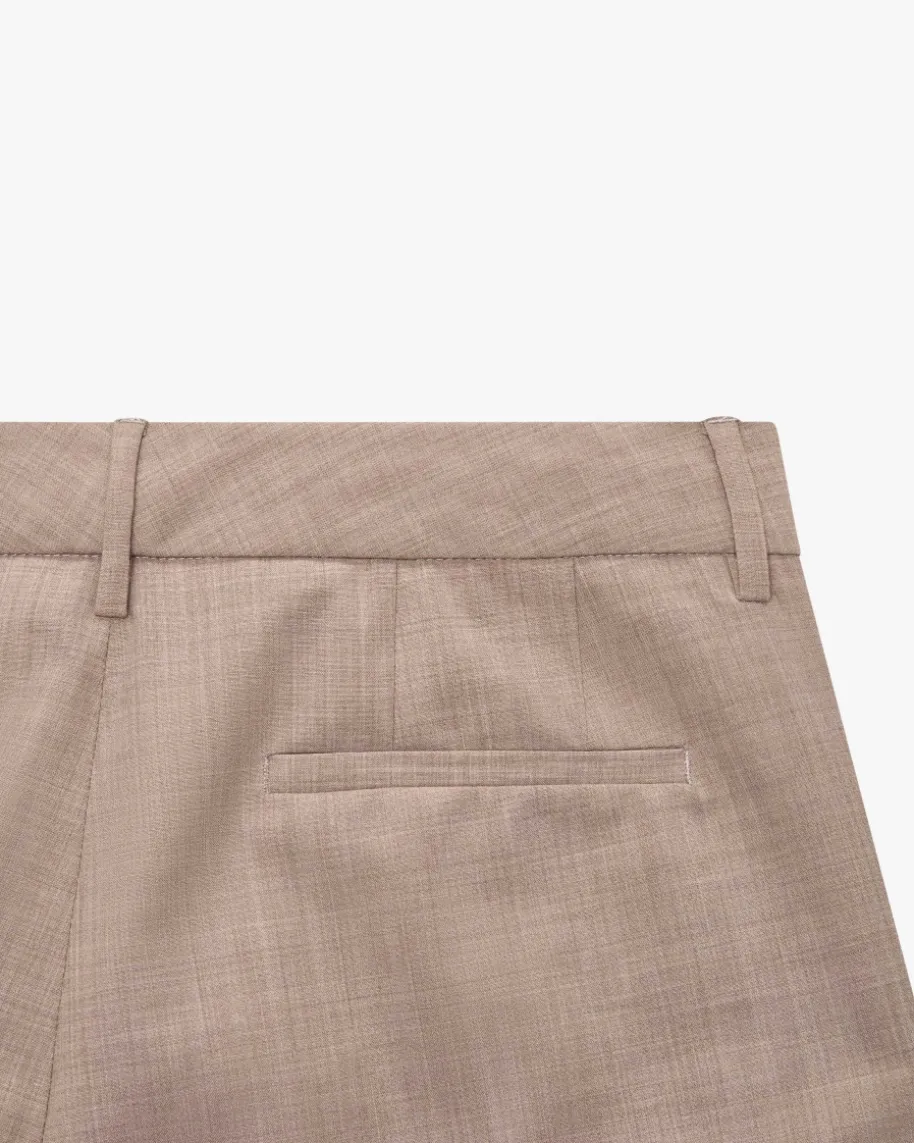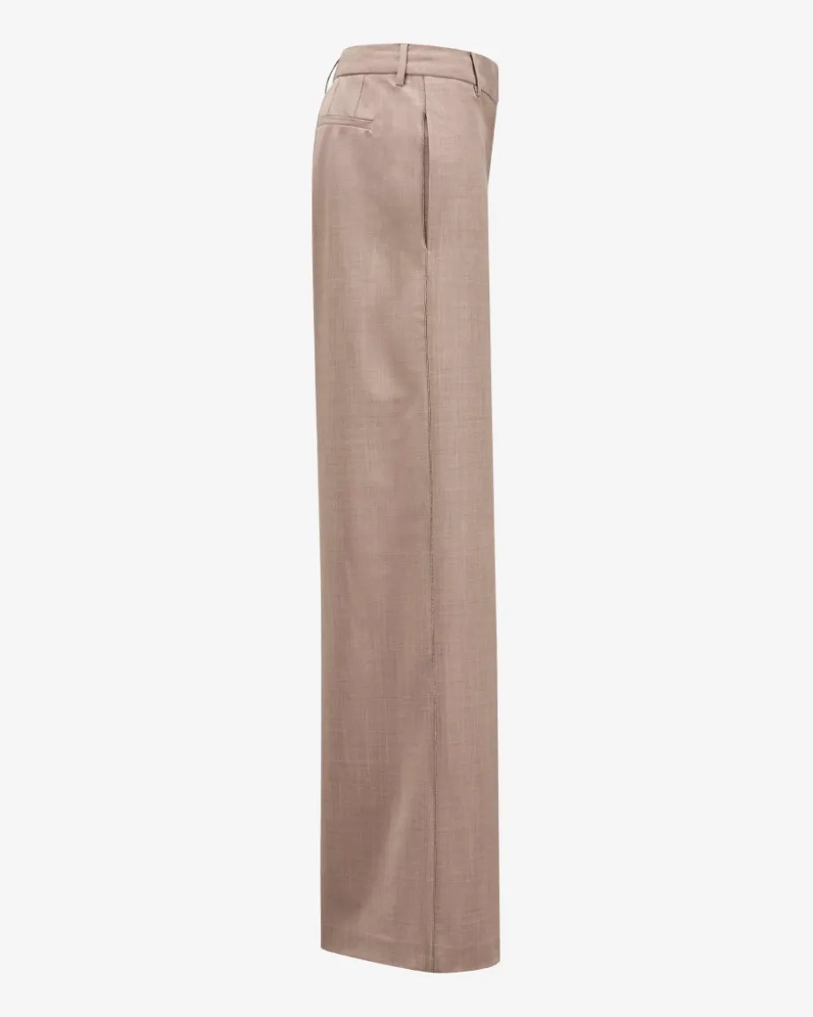 Wollhose für Damen von Fabiana Filippi in Taupe. Das weit geschnittene Modellpräsentiert sich im leichten Merinowoll-Mix mit extrahohem Bund und klassischenDetails, während das dezente Schmuckstein-Band entlang der Seitennaht einenedlen sowie femininen Touch verleiht.