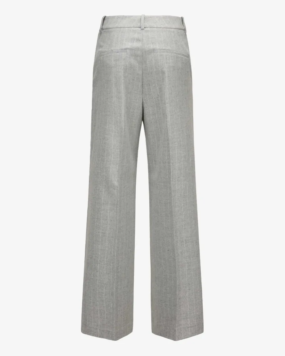 Hose für Damen von Peserico Easy in Hellgrau und Weiß. Das Modell präsentiertmit geradem Bein und hohem Bund, während der leichte Woll-Mix eine angenehmeHaptik verleiht. Das Nadelstreifen-Dessin sorgt zusammen mit der melierten Optikfür den letzten Schiff und kreiert so einen stilvollen Look für Office- oderCasual-Looks.