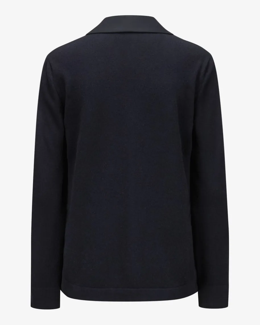 Hybrid-Blazer für Damen von Fabiana Filippi in Navy. Das leichte Modell bestichtdurch die raffinierte Material-Kombination aus Cool Wool-Vorderseite undFeinstrick-Rückseite mit besonders hohem Tragekomfort und legerem Charakter,welcher durch den Schmuckstein-Verschluss einen eleganten Touch erhält.