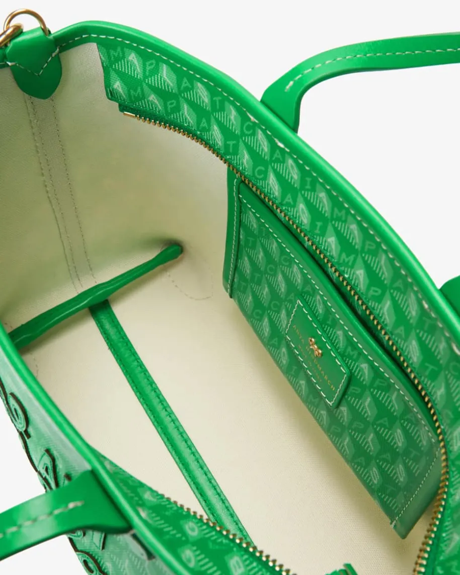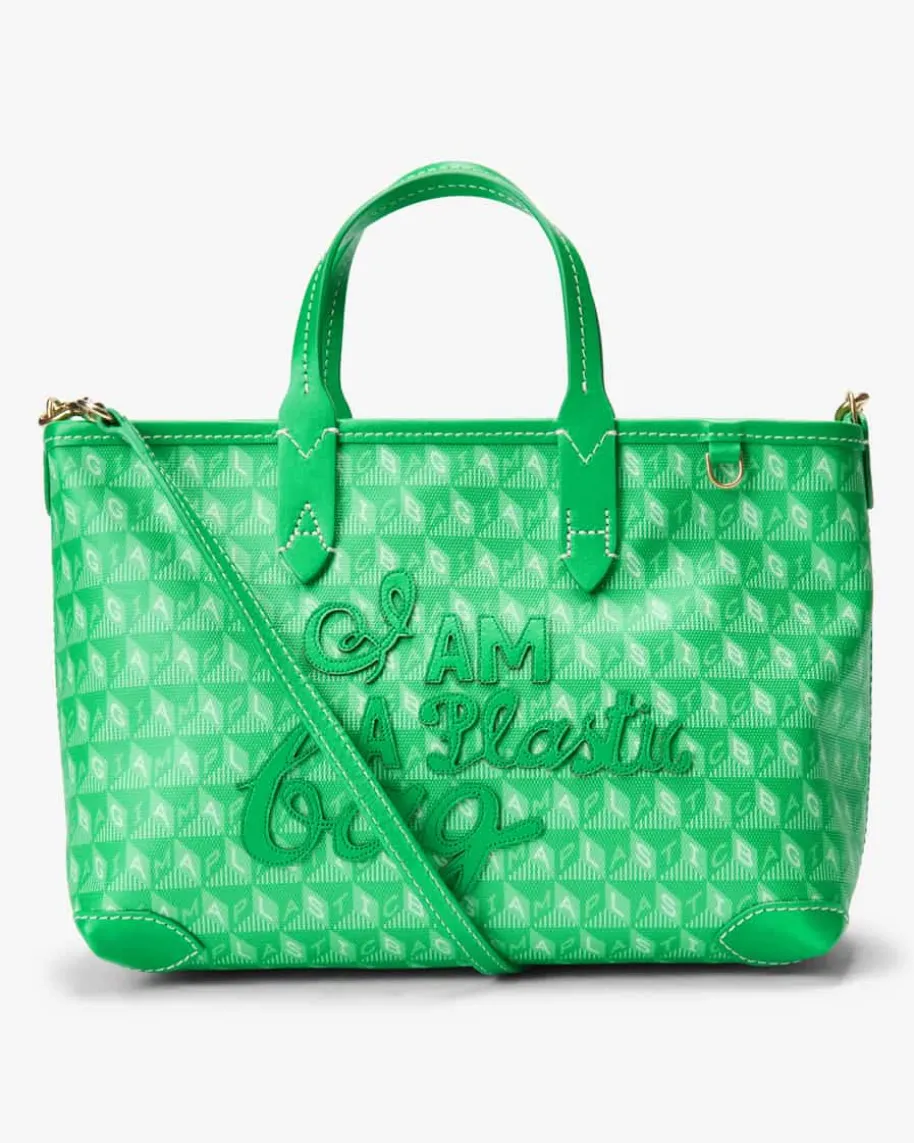 I am a plastic bag Handtasche für Damen von Anya Hindmarch in Grün. Das Modellpräsentiert sich dank der markanten Farbgebung sowie Allover-Dessins alsextravaganter Favorit mit ökologischem Kunstleder-Details aus Aloe Vera.