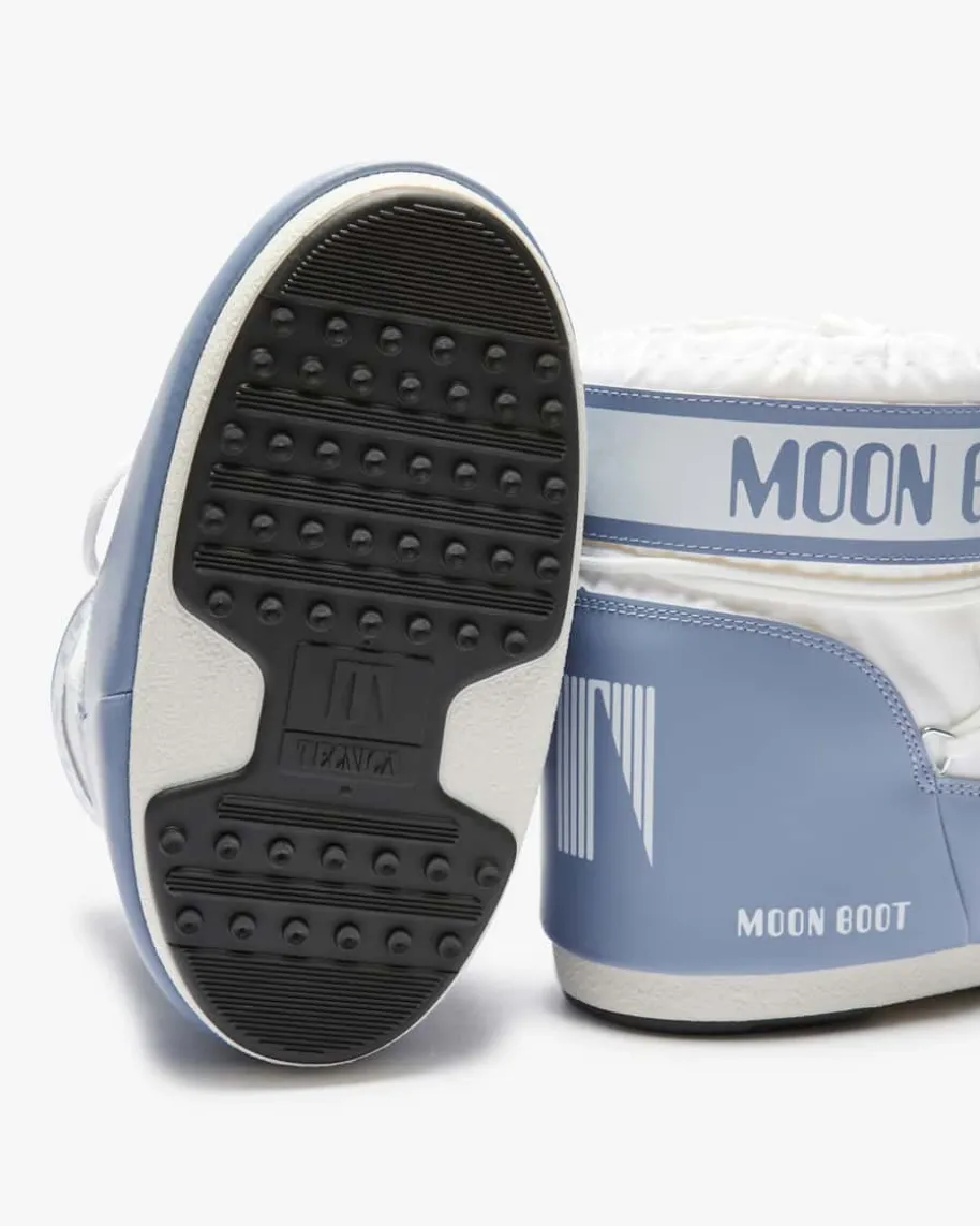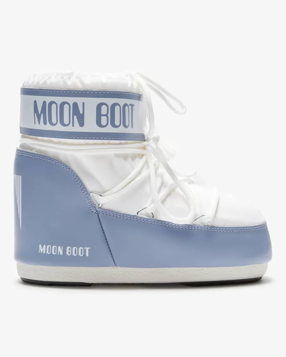 Icon Low Moon Boots für Damen von Moon Boot in Weiß und Hellblau. Das in den1970erJahren gegründete Label hat seine Inspiration in der Mondlandung von NeilArmstrong gefunden. Mit wasserabweisender Beschichtung präsentiert sich derWinterstiefel in gewohnt futuristischer Aufmachung. Diverse Logo-Details sowiedie labeltypische Schnürung vollenden das modische Gesamtbild gekonnt.