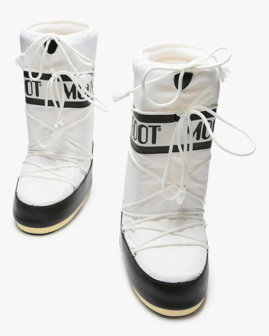 Icon Moon Boots für Damen von Moon Boot in Weiß und Schwarz. Das in den 1970erJahrengegründete Label hat seine Inspiration in der Mondlandung von Neil Armstronggefunden. Mit wasserabweisender Beschichtung präsentiert sich der Winterstiefelin gewohnt futuristischer Aufmachung. Diverse Logo-Details sowie der hohe Schaftvollenden das modische Gesamtbild gekonnt.