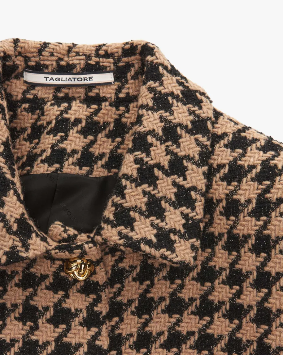 India Blazer für Damen von Tagliatore in Beige und Schwarz. Das italienischeLabel steht für perfekt geschnittene Blazer und Sakkos – sartoriale Präzisionmit modernem Touch. Dank des modischen Hahnentritt-Musters punktet auch diesestaillierte Modell als stilsicherer Begleiter, welcher durch die Klappentaschenund die goldfarbenen Knotenknöpfe gekonnt in Szene gesetzt wird. Zusätzlichkreieren die edel changierenden Glitzerfasern einen modernen Kontrast.