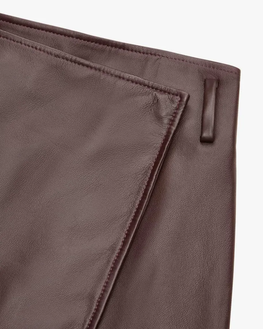 Isa Lederrock für Damen von Arma in Bordeaux. Das Label ist ein Synonym fürexquisite und zeitlose Lederbekleidung. Auch dieses Wickel-Modell präsentiertsich mit changierender Nappaleder-Verarbeitung, die für einen edlen Look sorgt.
