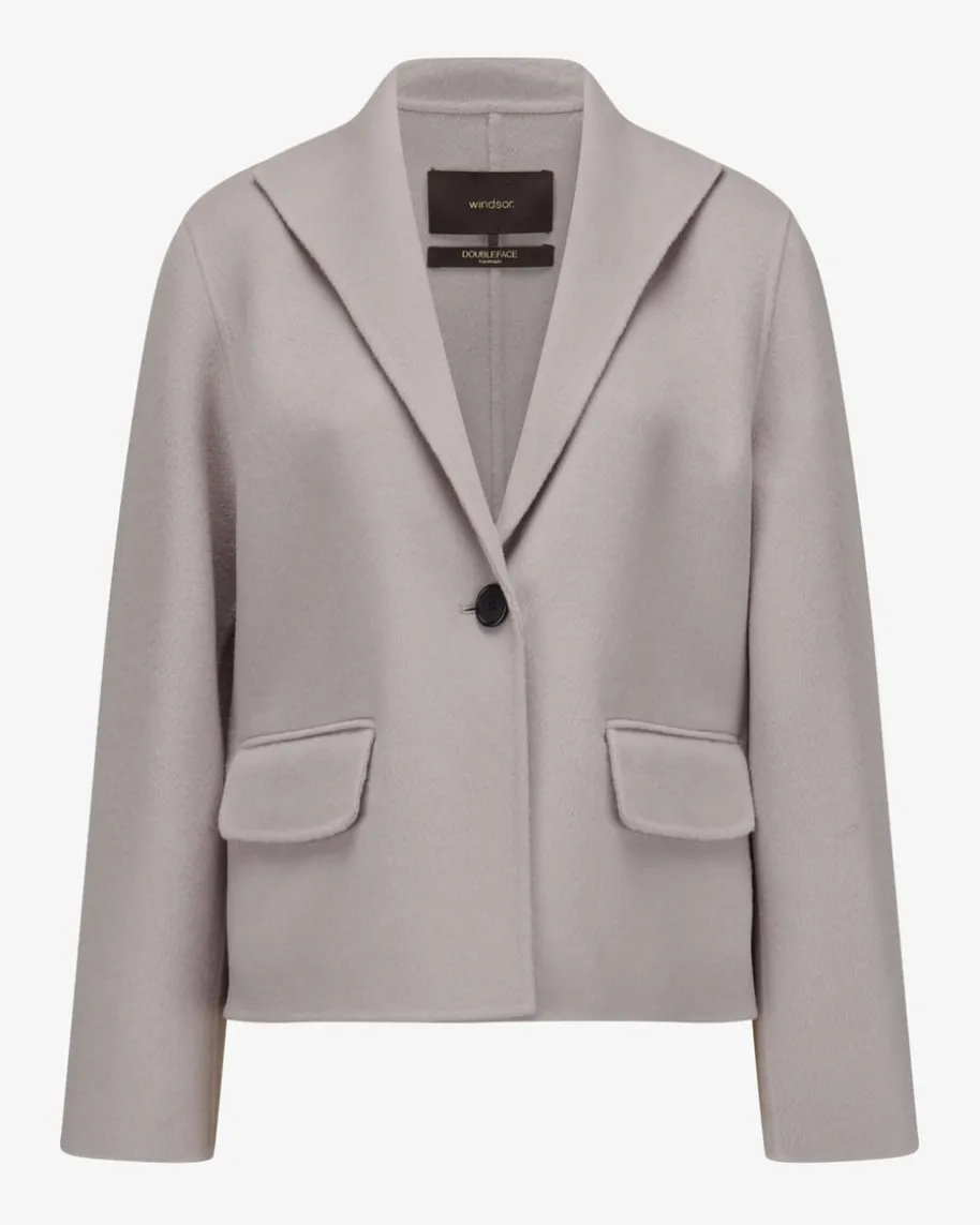 Jacke für Damen von Windsor in Beige. Das Modell präsentiert sich in besondersweicher Schurwoll-Qualität, die auch optisch mit edler Aufmachung überzeugt. DieBoxy-Passform kreiert einen femininen Power-Look, der vielseitig kombinierbarist.