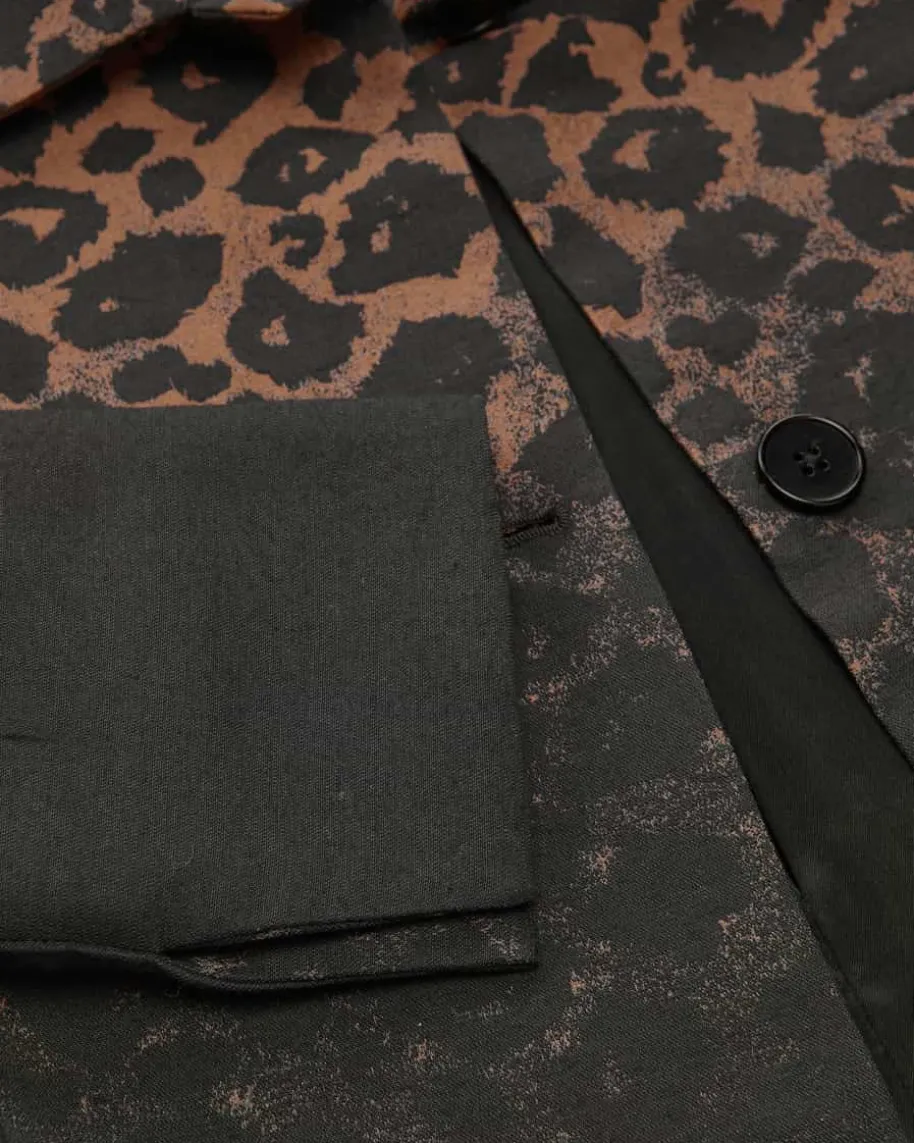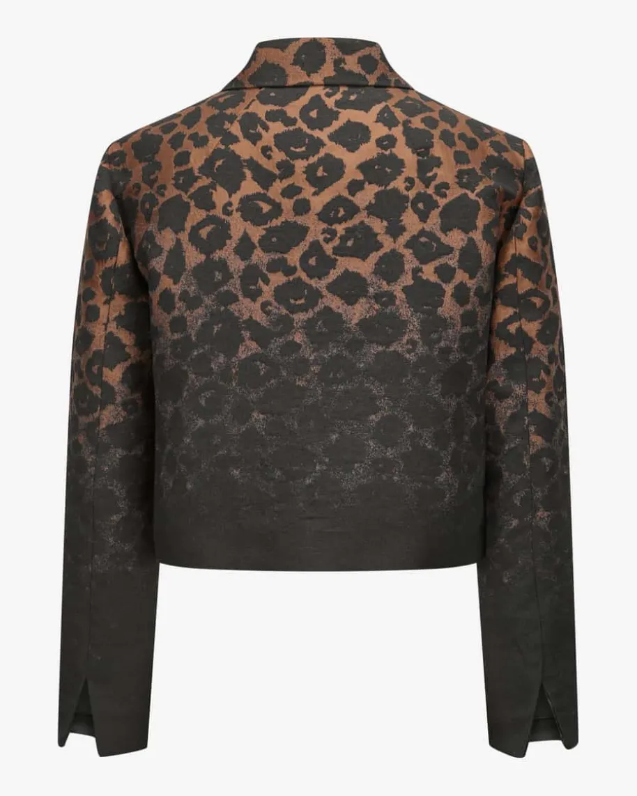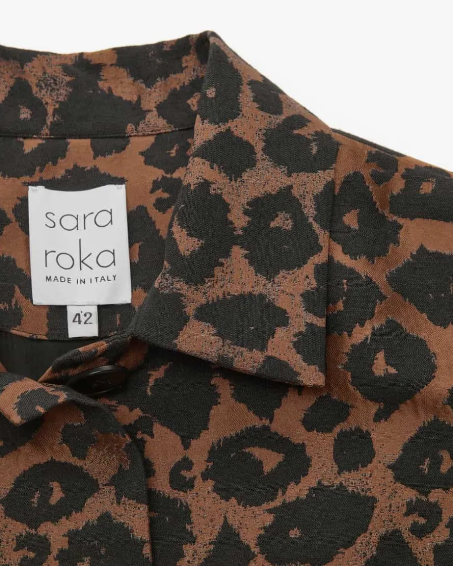 Jacke für Damen von Sara Roka in Schwarz und Hellbraun. Feminine Designs mit demgewissen Etwas. Mit diesem Modell hat das Label dank der weiten, verkürztenPassform und der Blazer-Silhouette einen perfekten Begleiter zum Kleidgeschaffen. Das Leomuster setzt dabei modische Akzente.